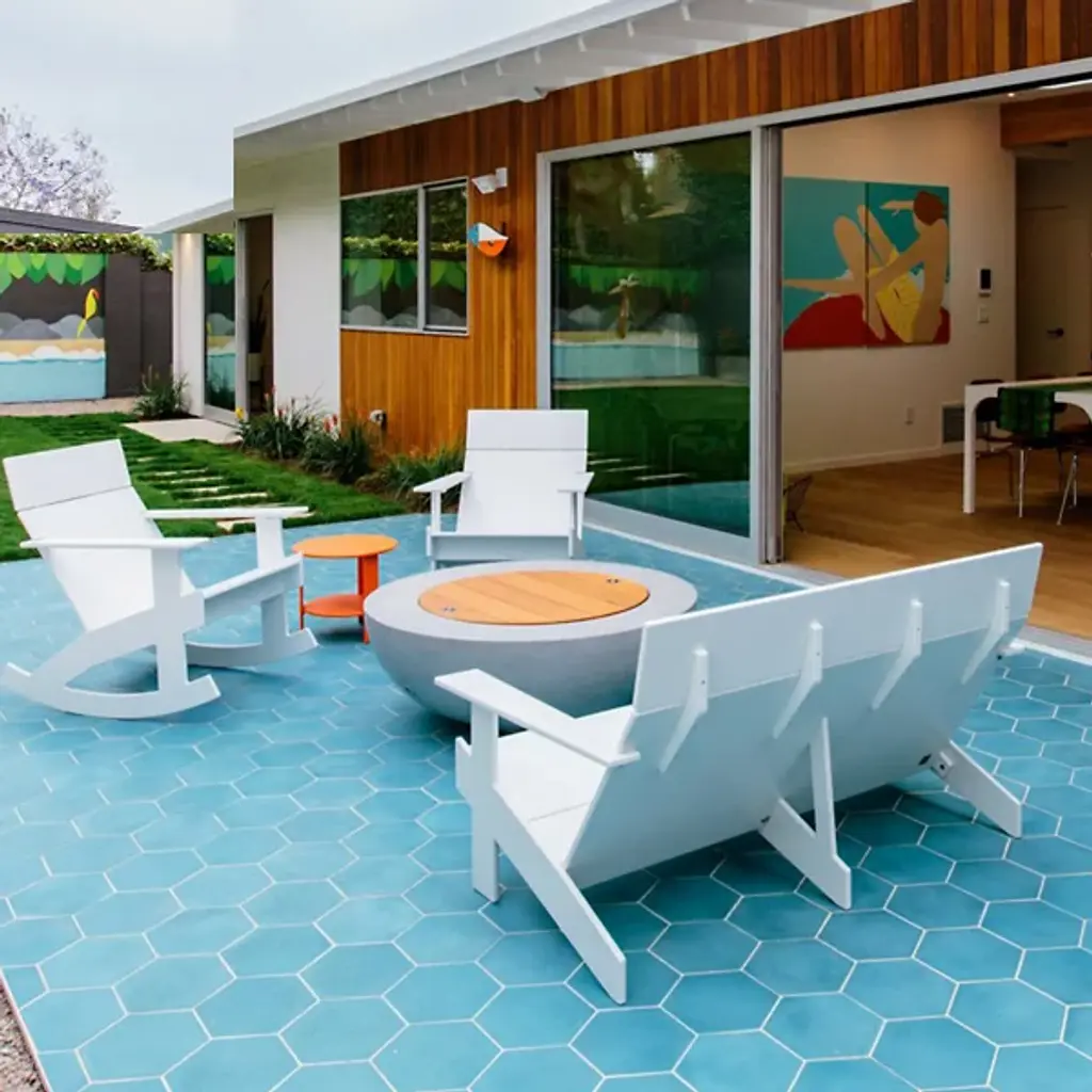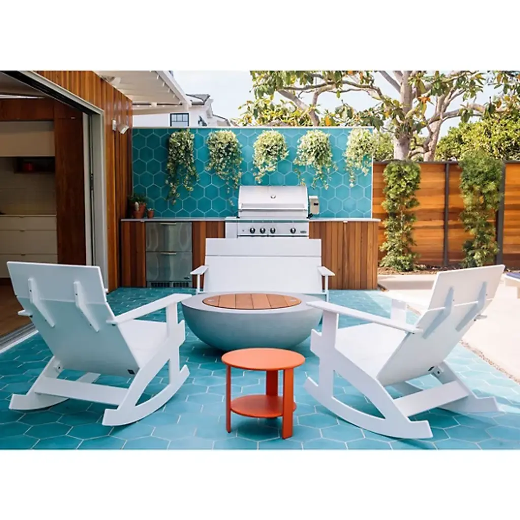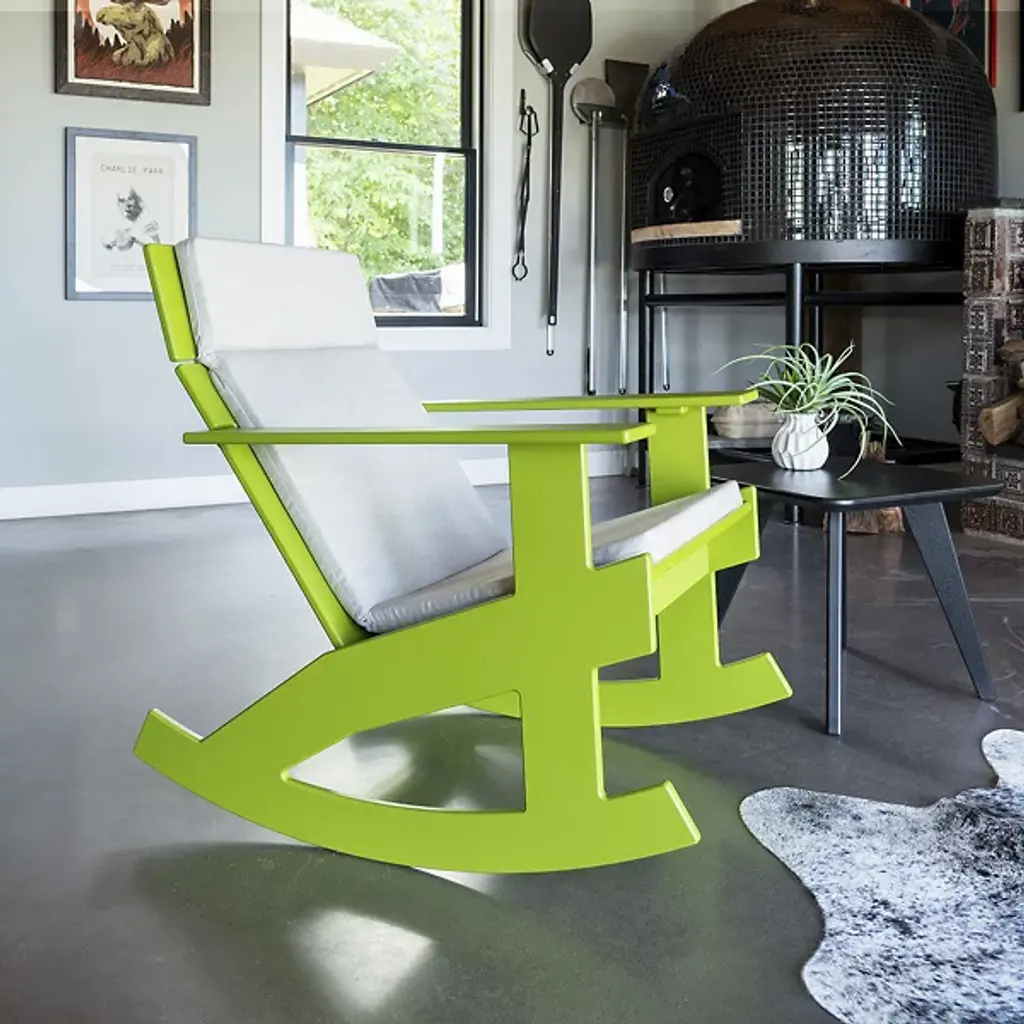 A cutting-edge and stylish modern piece that puts sustainability at the forefront, the Lollygagger Outdoor Rocker Chair from Loll Designs is made of recycled milk jugs and High-density Polyethylene (HDPE). The material of the jugs allows for a vibrant and varied array of colors, ensuring this piece stands out in your space. Comforting and unique, this chair creates conversation among friends and family while beautifully accenting the décor as you rock back and forth.