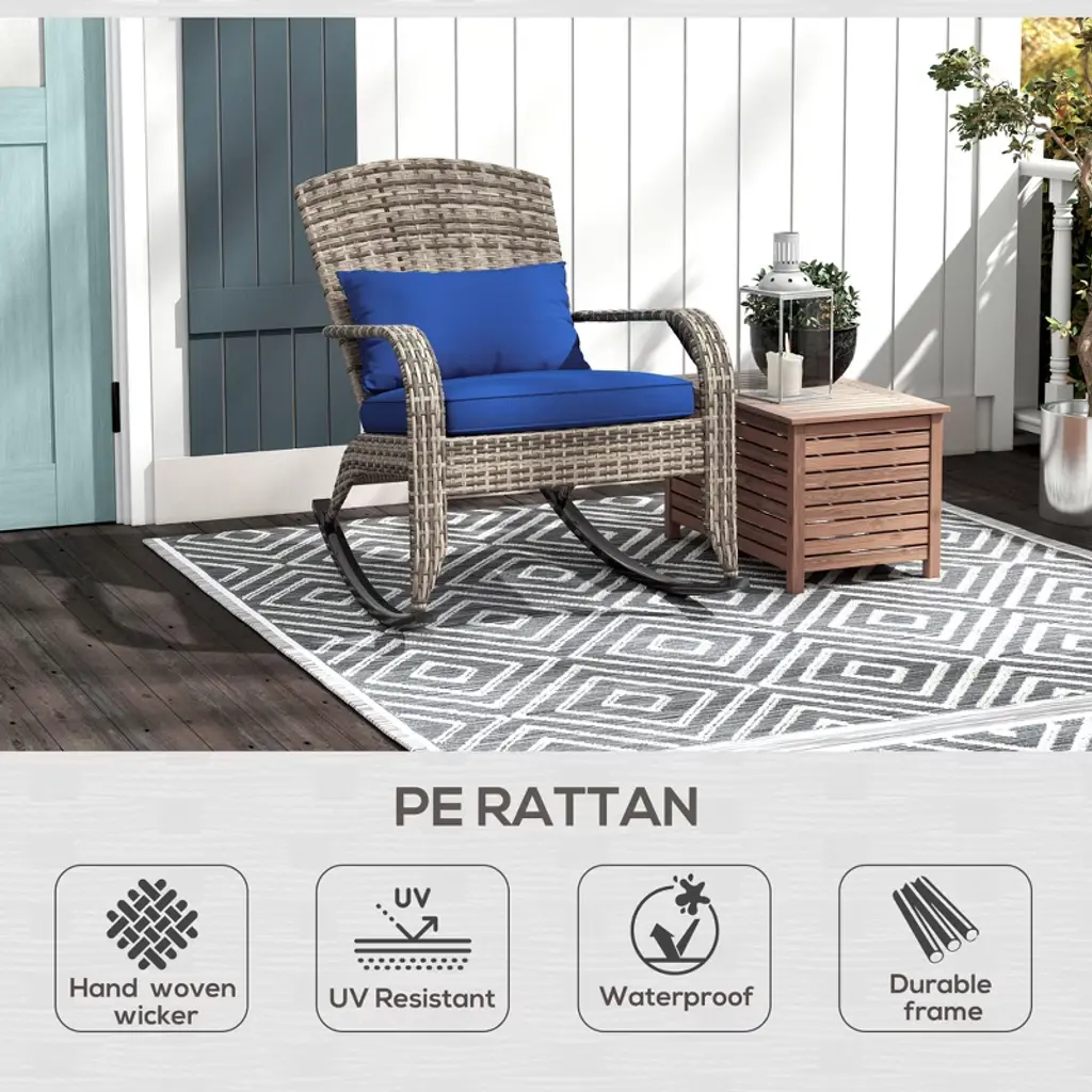 Maggift Patio Accent Chairs, Rocking Chair With Fixed Armrests, Ergonomic Design, Suitable For Lawn, Garden And Porch, Blue, 26"*35"*38.5"