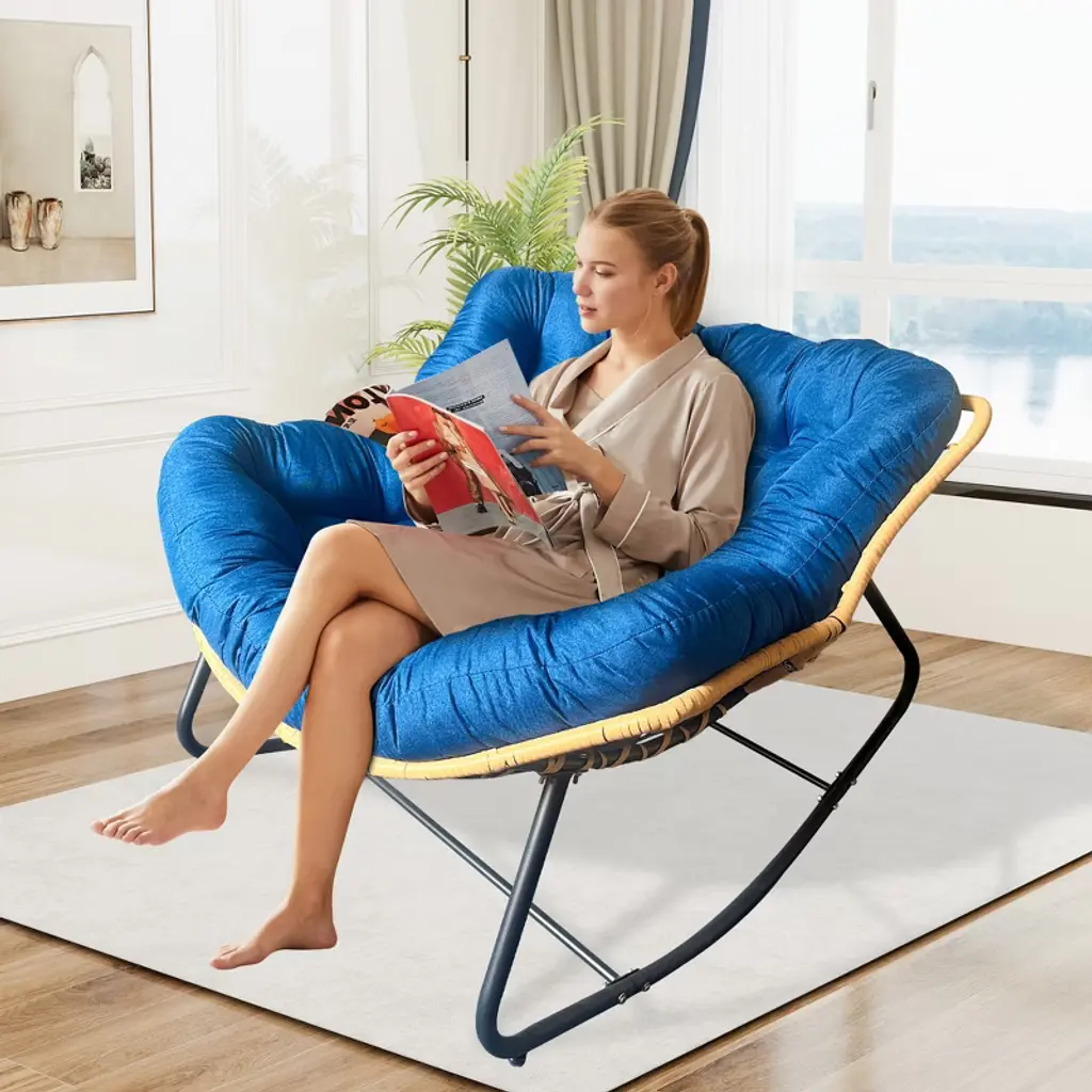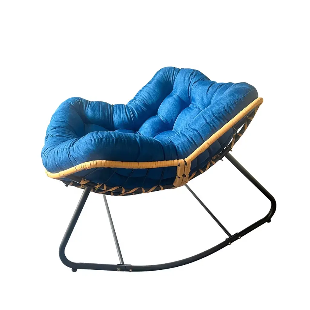 Maliang Rocking Chair, Rattan Wicker Lounge Chair, Blue