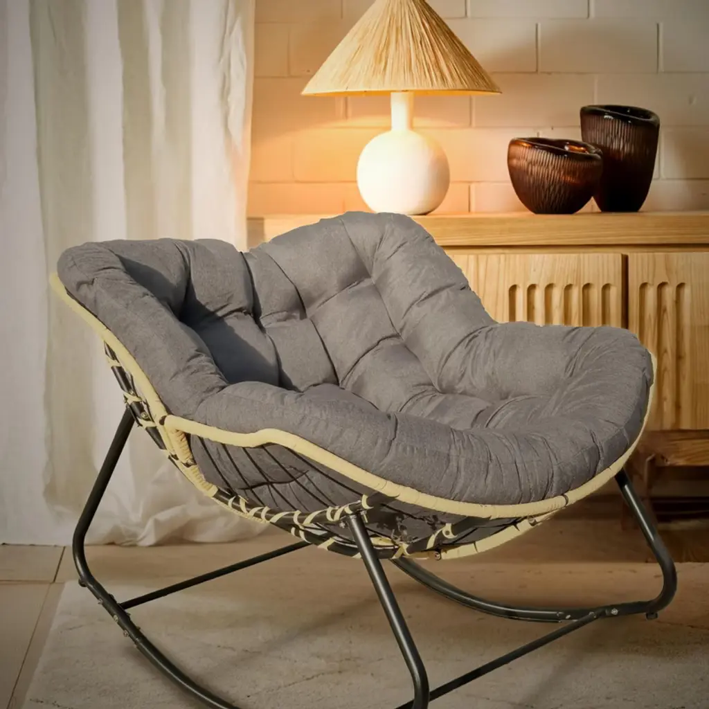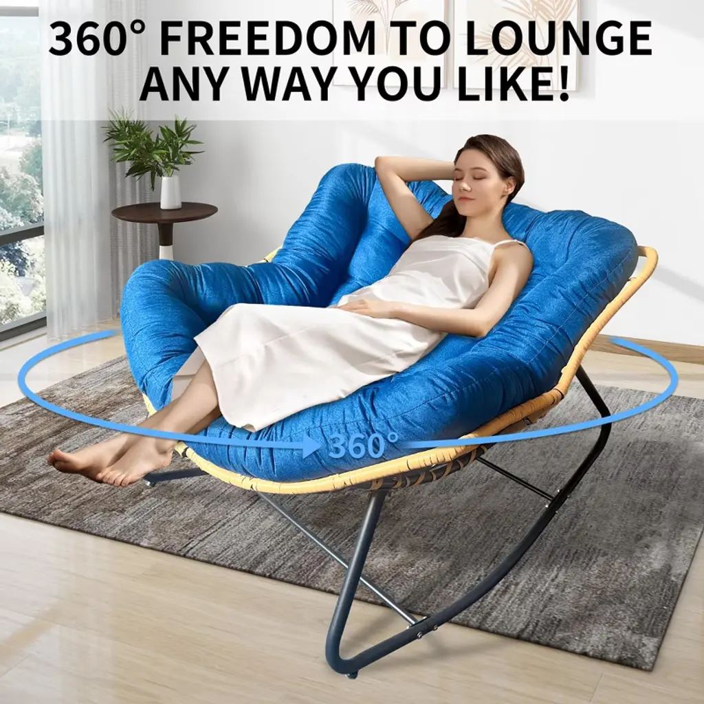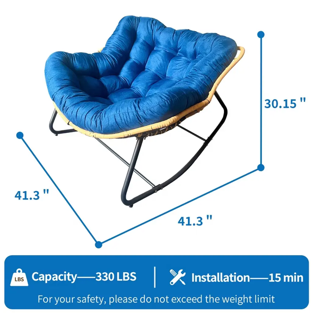 Enhance your relaxation with our Multi-Functional Rattan Rocking Lounge Chair, designed for ultimate comfort and aesthetic appeal. Perfect for indoor and outdoor use—whether in your living room, bedroom, study, or courtyard—this chair provides a cozy retreat for reading, napping, or unwinding. Its gentle rocking motion helps relieve stress, ease tension, and even improve sleep quality. Crafted with a sturdy metal frame (450 lb capacity) using robot welding technology, it ensures stability and safety while maintaining a sleek, ergonomic design. Easy to assemble and maintain, this stylish rattan egg chair also serves as a charming decorative piece, making it an ideal gift for home lovers.