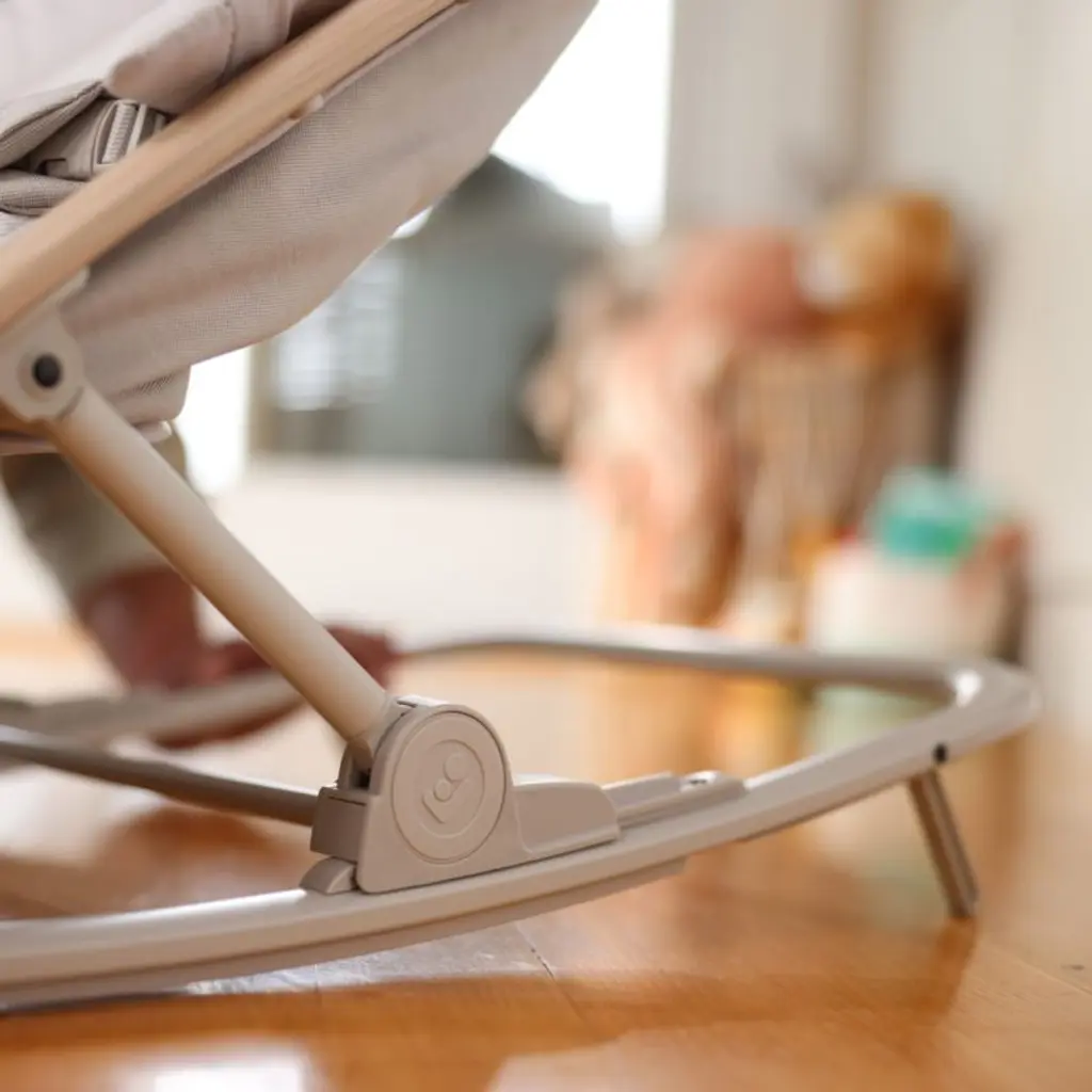 Maxi-Cosi's stylish, neutral oat-hued rocker gives babies the best seat in the house. Featuring a modern design with wooden-finish accents, this lightweight and supportive rocker gives little ones a place to relax or bounce. Newborns can rest in a soft, cozy inlay sized right for tiny bodies; remove it and the seat's ready to hold babies up to 20 pounds. Adjustable to three different positions with one hand, the seat folds flat for storage when needed and has machine-washable fabricso it's just as enjoyable for parents as it is for babies.