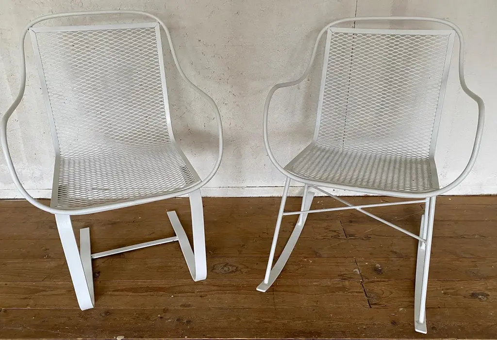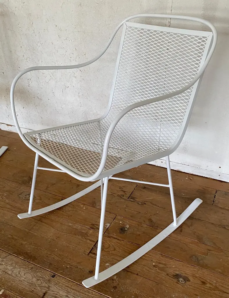 Mid-Century Modern Metal Garden Mesh Rocker And Spring Chair