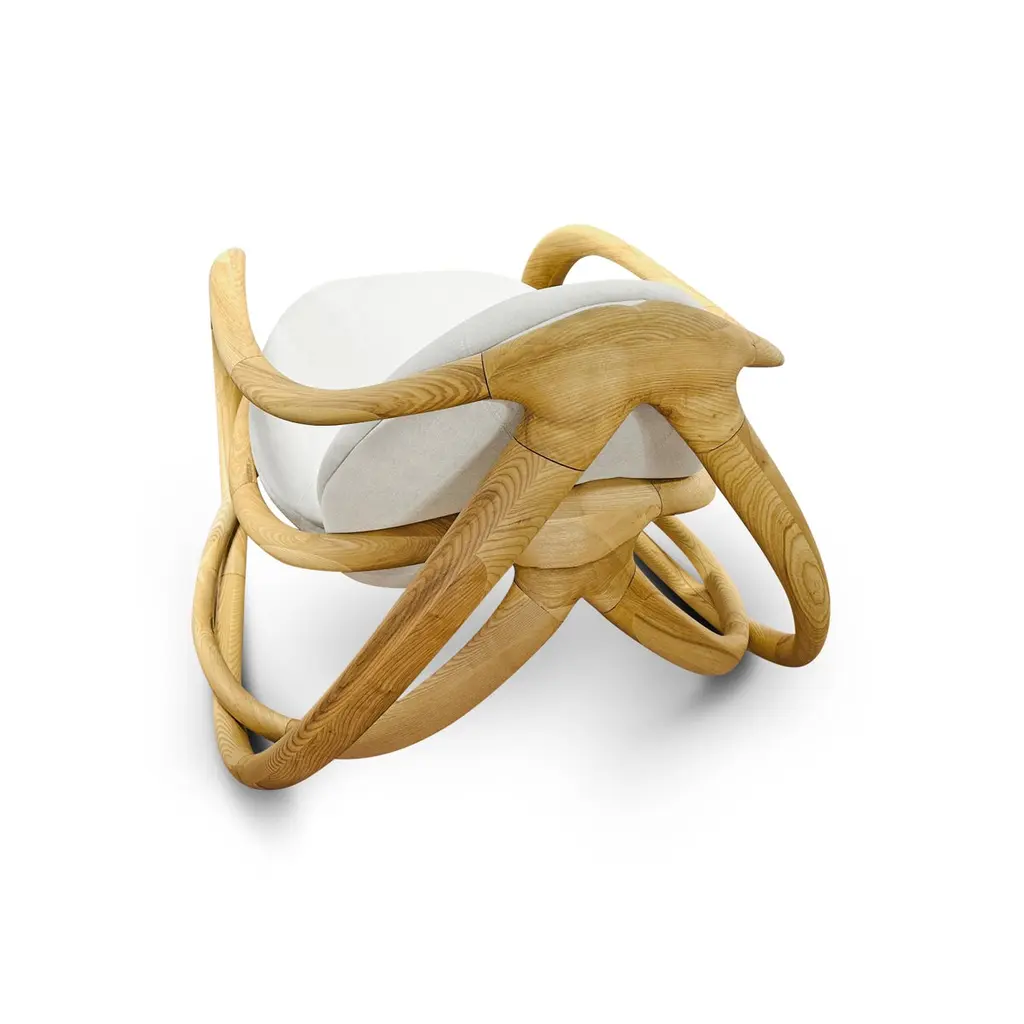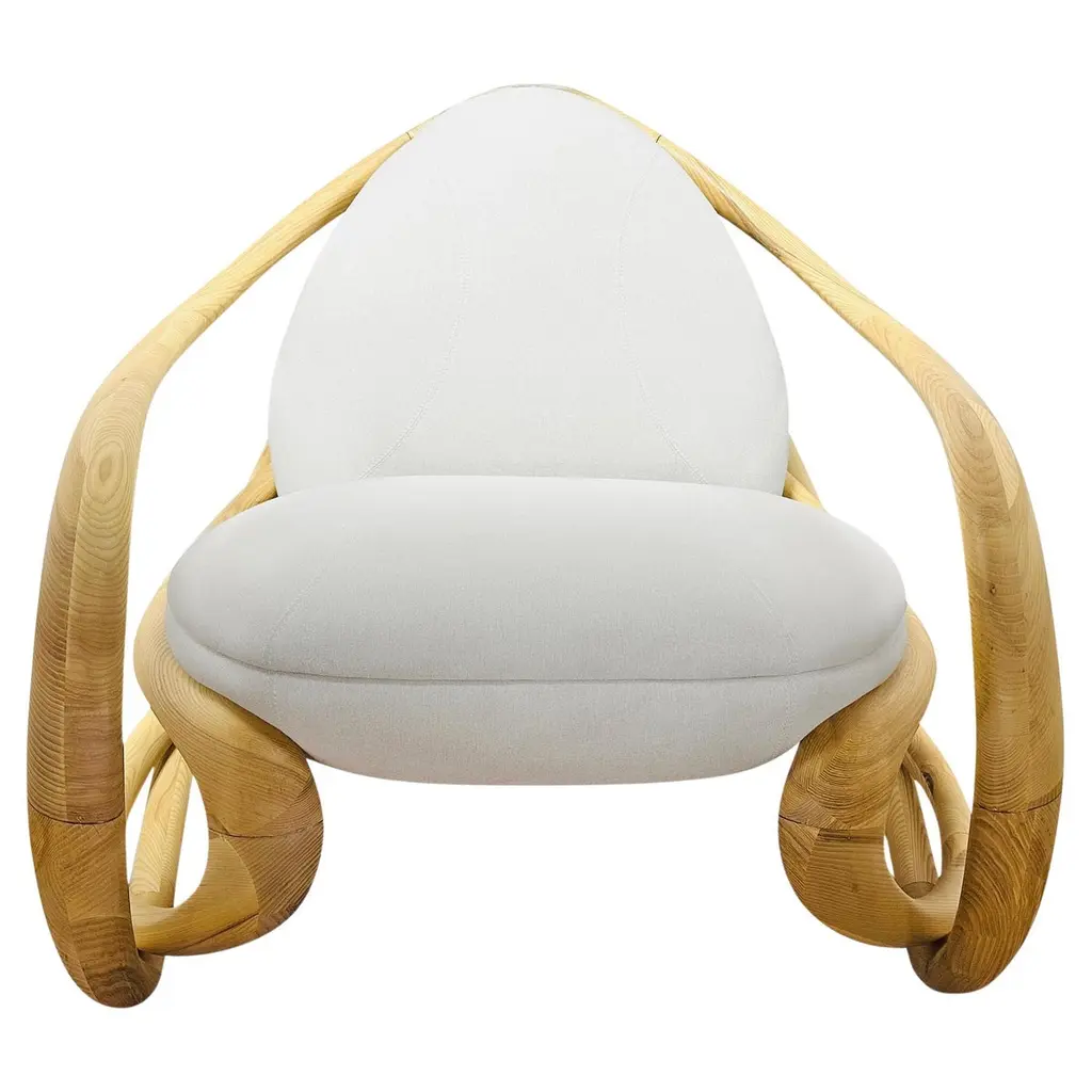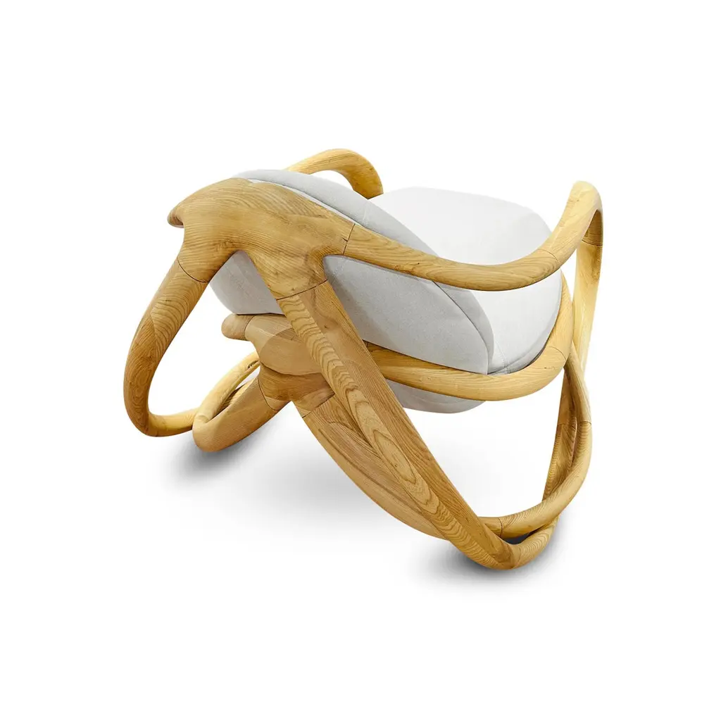 Modern Organic Sculpted Wood Upholstered Fabric Indoor Rocking Chair
