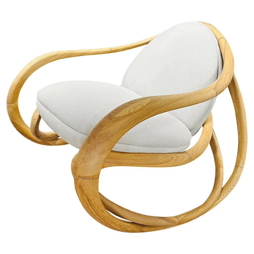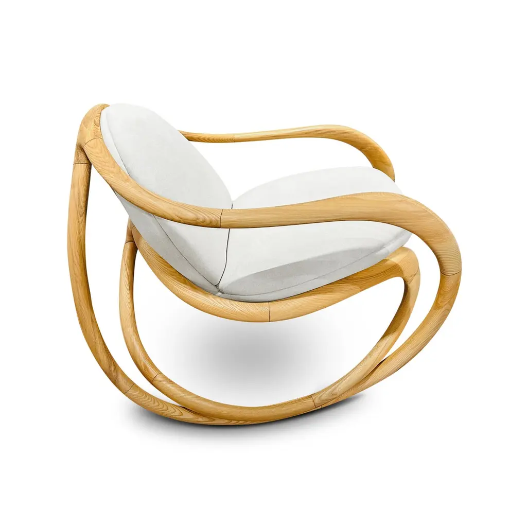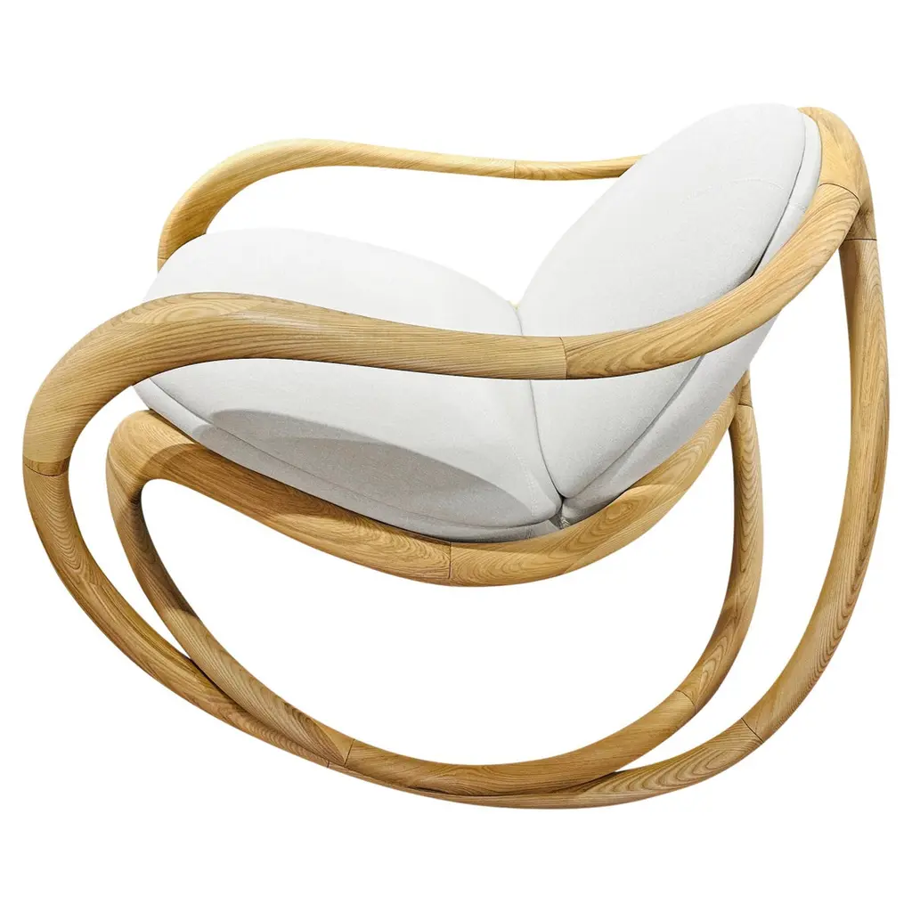 Rock into serenity with our modern organic rocking chair, where sculptural form meets everyday comfort. Crafted from wood and gracefully shaped with flowing organic lines. Whether placed in a reading nook, nursery, or living room, its gentle rocking motion soothes and grounds you. With a timeless blend of craftsmanship and modern minimalism, this piece isn't just a chair—it’s a sanctuary.Organic silhouetteSolid wood frame with a smooth finishHigh-density foam cushions wrapped in soft, durable fabricIdeal for modern, Scandinavian, and earthy interiors