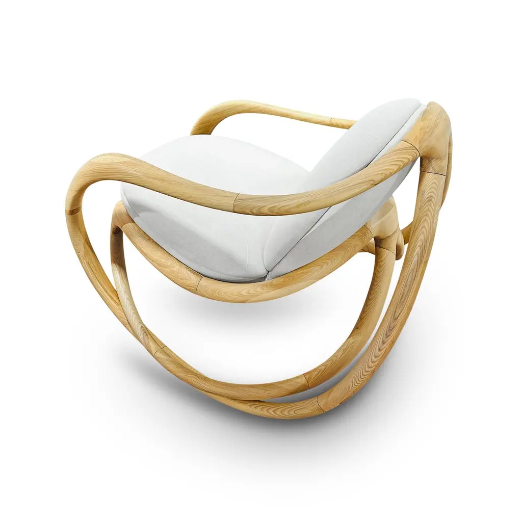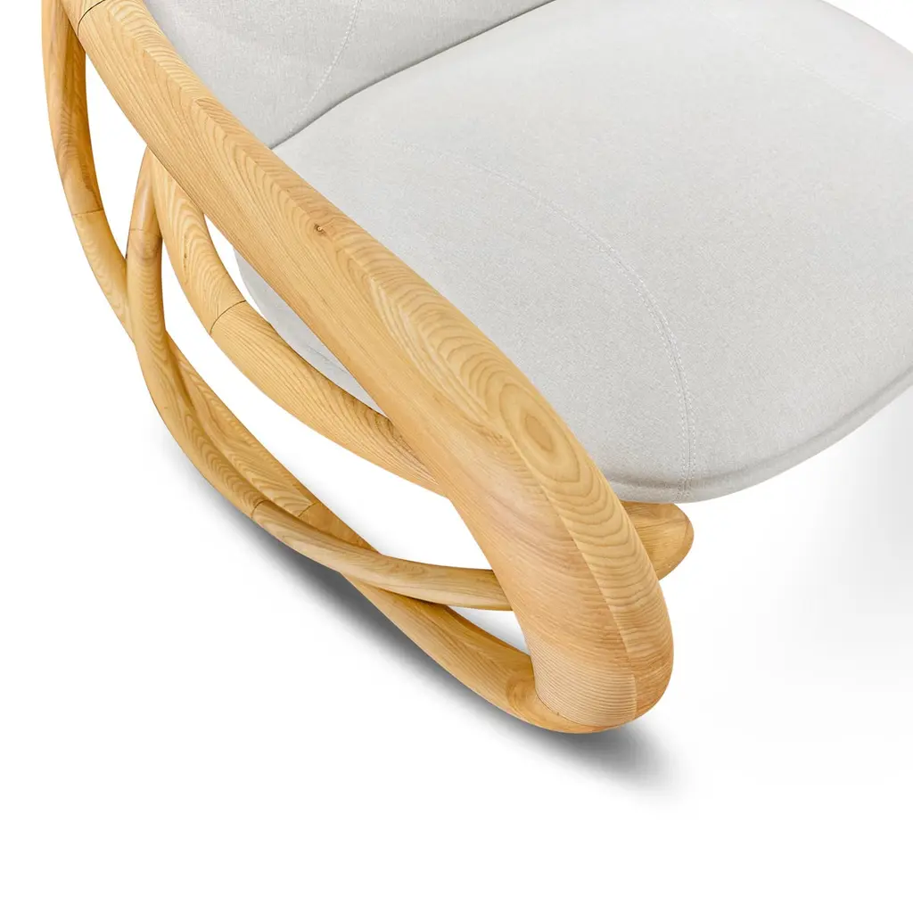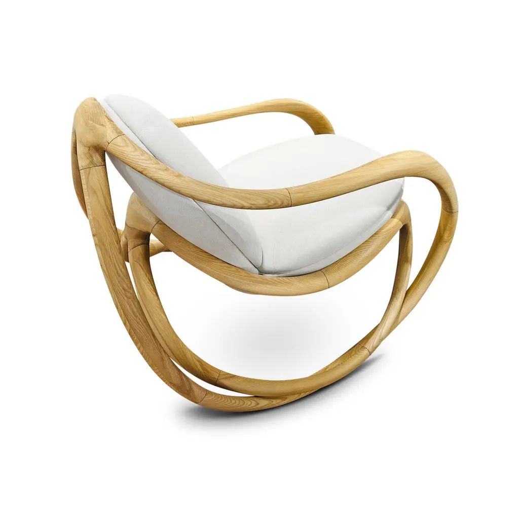 Rock into serenity with our modern organic rocking chair, where sculptural form meets everyday comfort. Crafted from wood and gracefully shaped with flowing organic lines. Whether placed in a reading nook, nursery, or living room, its gentle rocking motion soothes and grounds you. With a timeless blend of craftsmanship and modern minimalism, this piece isn't just a chair—it’s a sanctuary.Organic silhouetteSolid wood frame with a smooth finishHigh-density foam cushions wrapped in soft, durable fabricIdeal for modern, Scandinavian, and earthy interiors