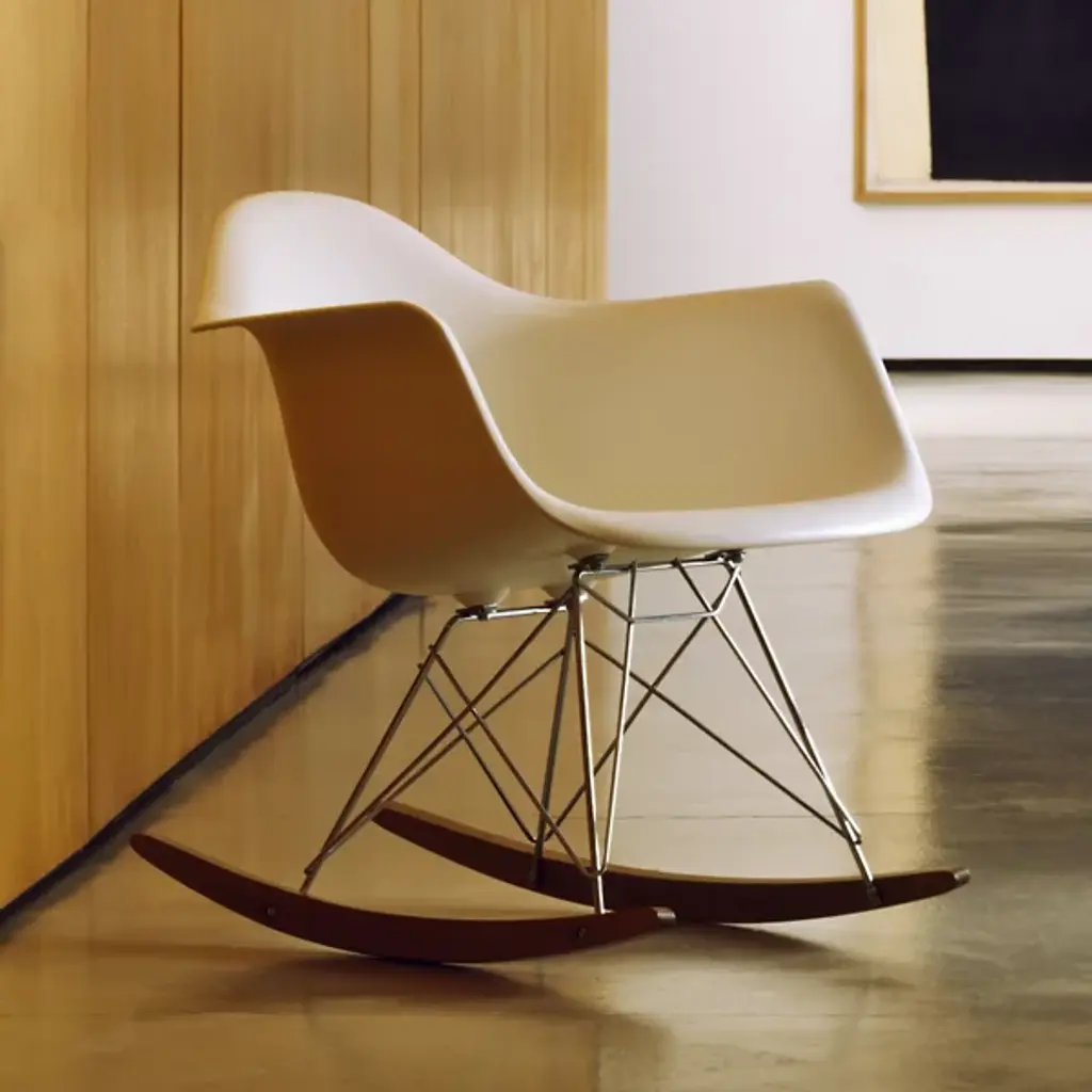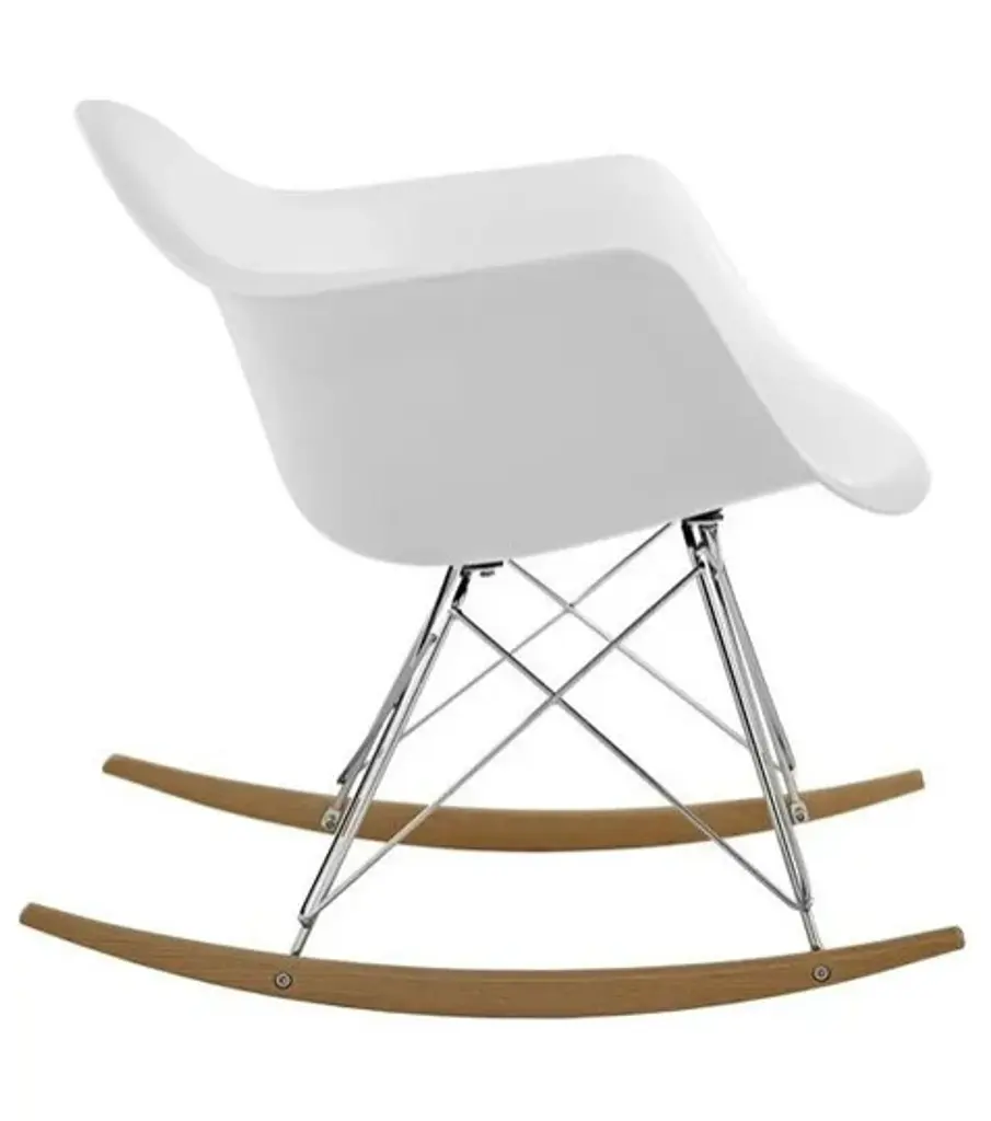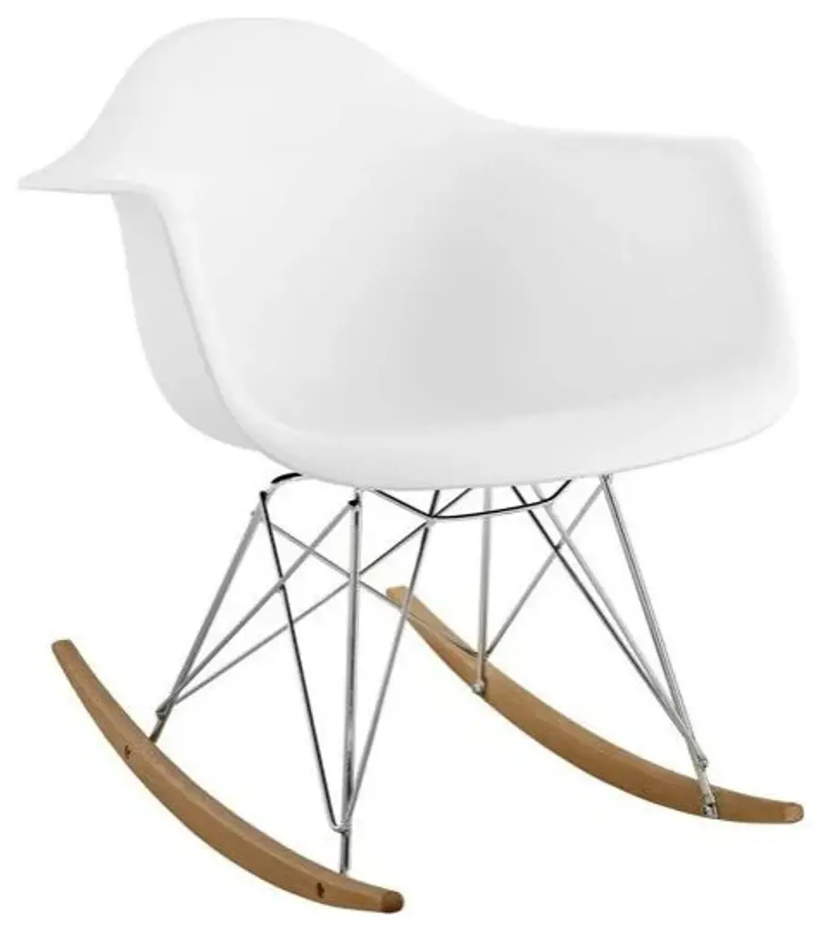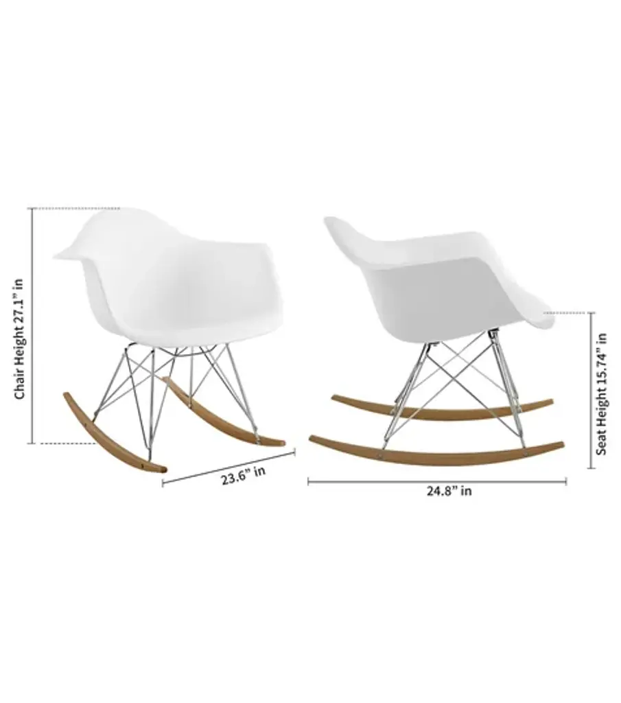 Have you ever looked at an empty corner in your home and longed for it to be filled with something but you just can't think of what? If you already have a bookcase in one corner and a lamp in the other, just imagine how good our stylish Eiffel Rocking Chair would look filling the space. A contemporary twist on an old rocking chair, this designer seat would look great in a variety of different rooms in your home, adding a modern flair to a once lonely and unused space!Our Eiffel Rocking Chairs are great as occasional chairs. They would look lovely in the corner of a nursery, child's bedroom, or adult's bedroom. Perhaps you could place them in a playroom or tv area. This makes the chairs incredibly versatile and very suited to family homes.Chair Weight: 25 lbsSeat Height: 15.74" inMaterial: ABS, Chrome Steel, Ash WoodWeight Capacity: 400 lbsAssembly: Light assembly requiredHardware & Tools Included: YesWarranty: 1 Year