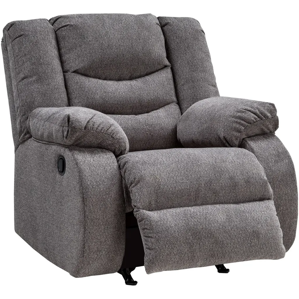 The Morrison Rocking Recliner is a family favorite that's designed for comfort and durability. It features a tufted back and chaise seat, plus amply padded arms to cradle you in comfort. Simply use the convenient handle on the outside arm to raise the legrest for reading, relaxing or watching TV. When you're not reclining, it's a relaxing rocker with a smooth, graceful motion.