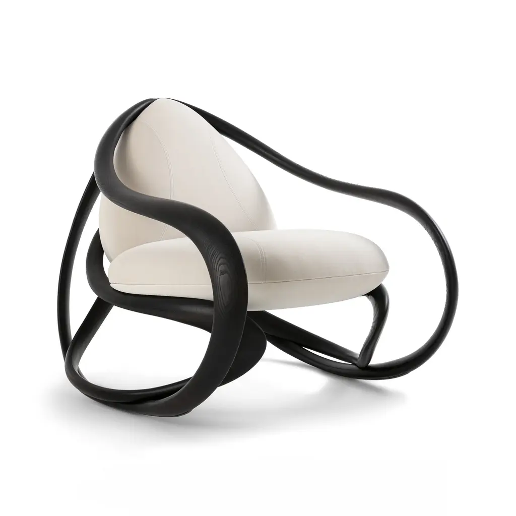 The Move Rocking Chair from Giorgetti reimagines a classic form with sculptural grace and masterful Italian craftsmanship. Designed with an elegant, fluid frame in finely finished solid wood, its sweeping curves create both visual rhythm and a gentle rocking motion that soothes the senses. The generously upholstered seat and backrest—available in luxurious fabrics or leathers—offer deep comfort without compromising the chair’s refined silhouette. Every detail, from the precise joinery to the perfectly balanced base, reflects Giorgetti’s dedication to artistry, turning a functional seat into an heirloom-worthy piece. Highlights