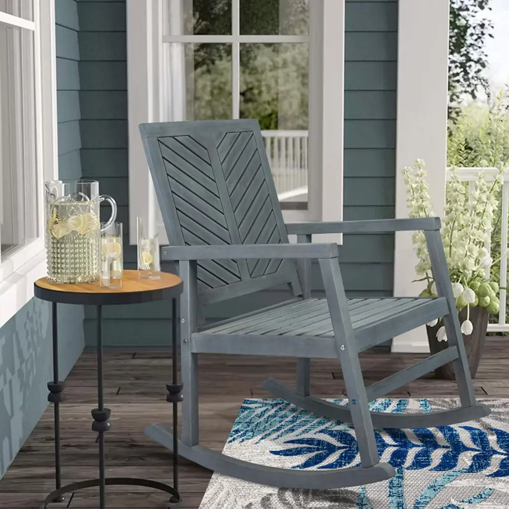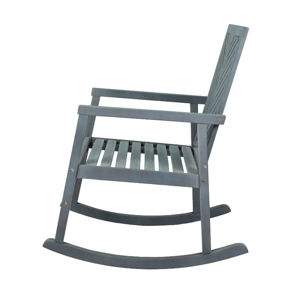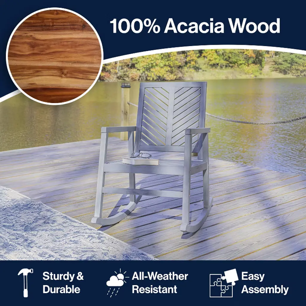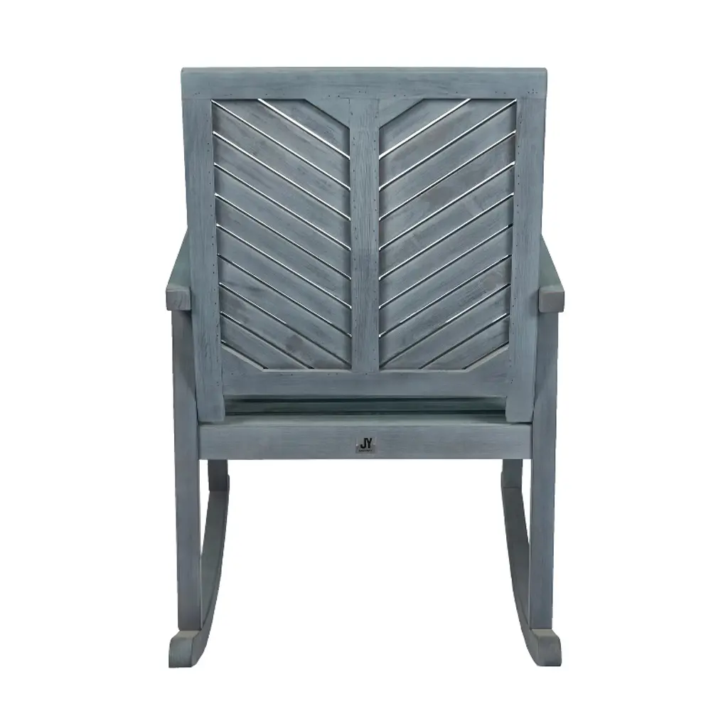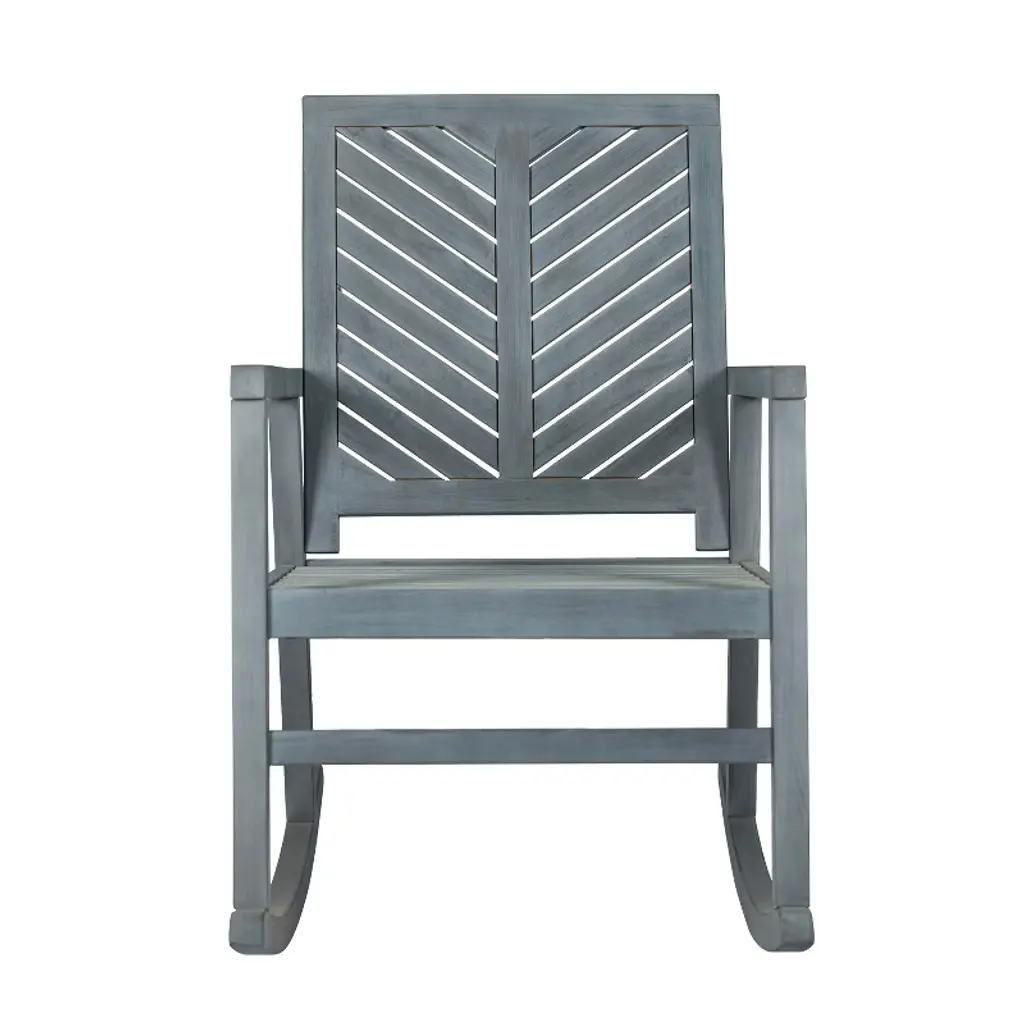 Ned Modern Chevron-back Acacia Wood Patio Outdoor Rocking Chair, Gray - Jonathan Y
