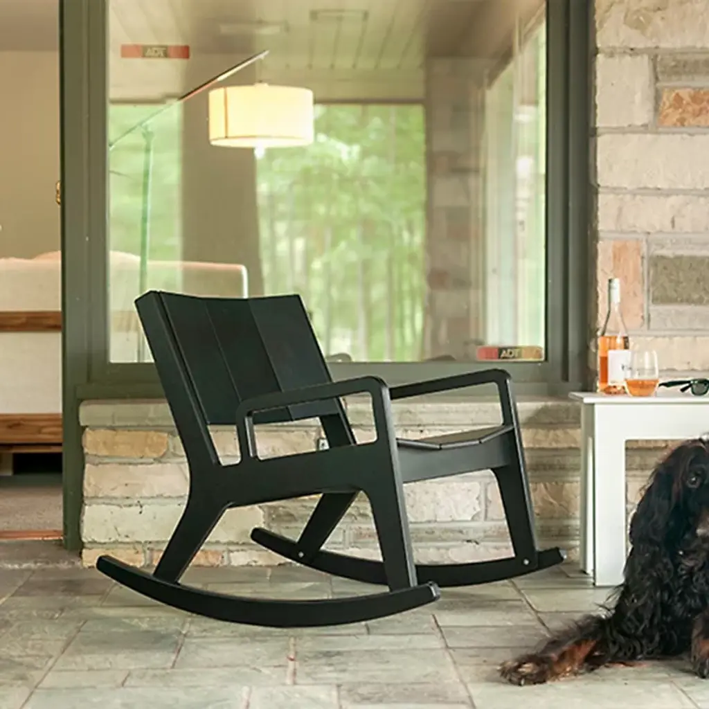 Any locale is the ideal one for comfortable rocking with the No. 9 Outdoor Rocking Chair by Loll. Designed in 2013 by Studio Murmur, it features weatherproof construction that withstands the elements on your patio or deck. Hidden fasteners support the rocker's simple, sophisticated structure, while its panels (crafted from recycled milk jugs and non-recycled HDPE) deliver its trendy comfort with environmental consciousness and bold practicality.