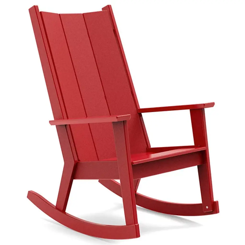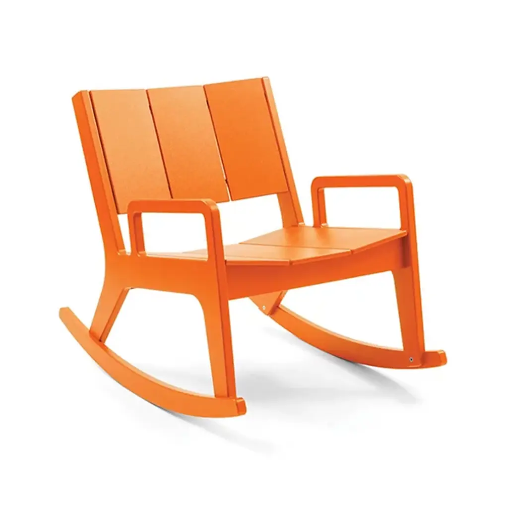Any locale is the ideal one for comfortable rocking with the No. 9 Outdoor Rocking Chair by Loll. Designed in 2013 by Studio Murmur, it features weatherproof construction that withstands the elements on your patio or deck. Hidden fasteners support the rocker's simple, sophisticated structure, while its panels (crafted from recycled milk jugs and non-recycled HDPE) deliver its trendy comfort with environmental consciousness and bold practicality.