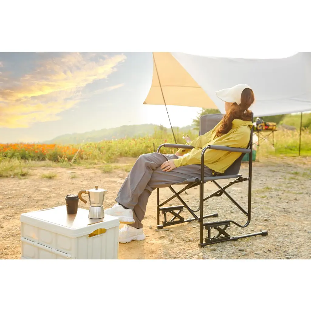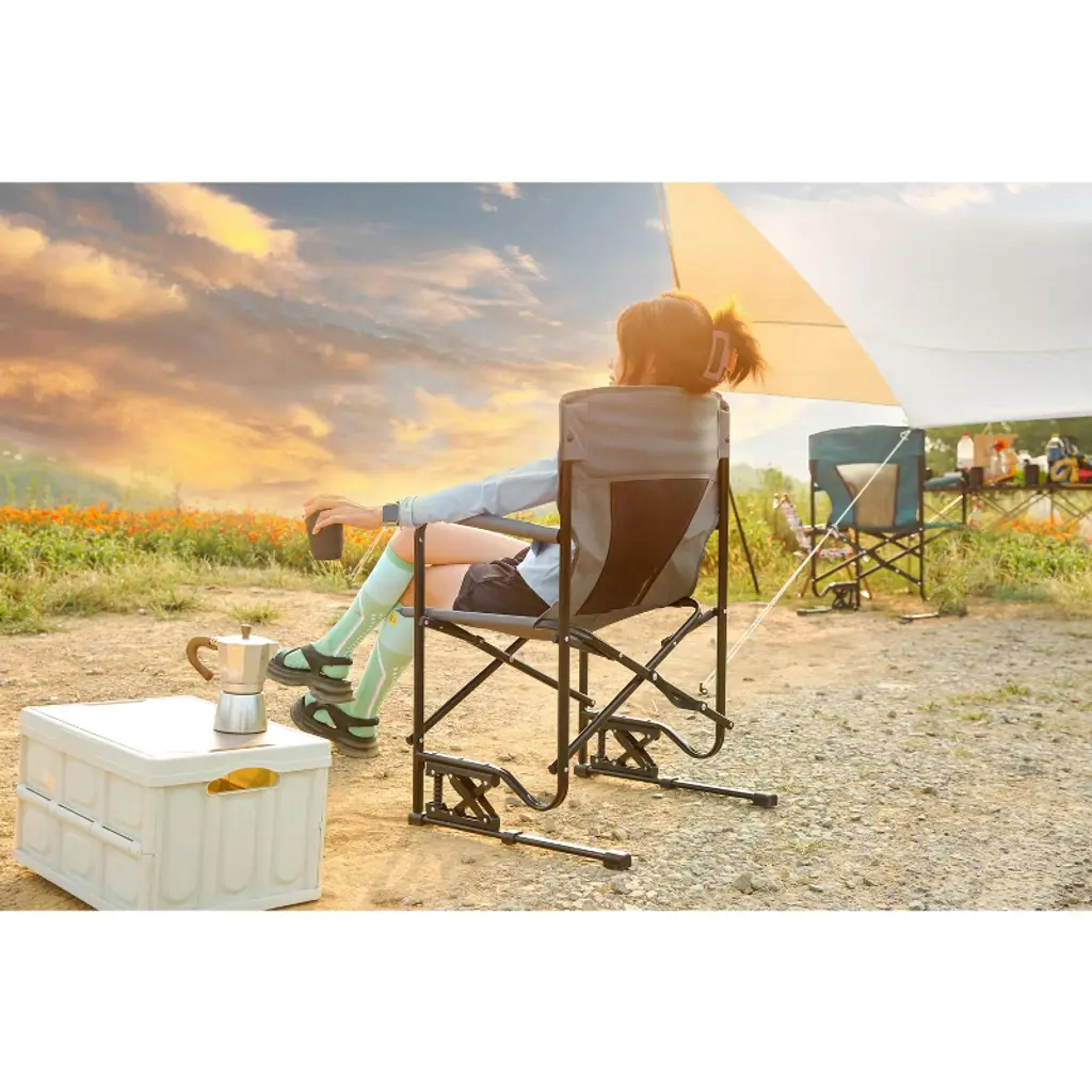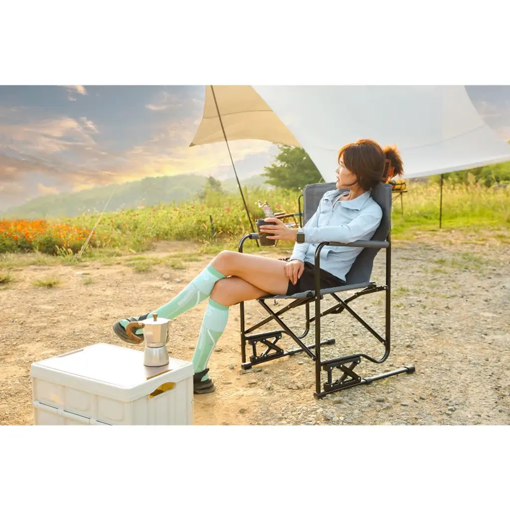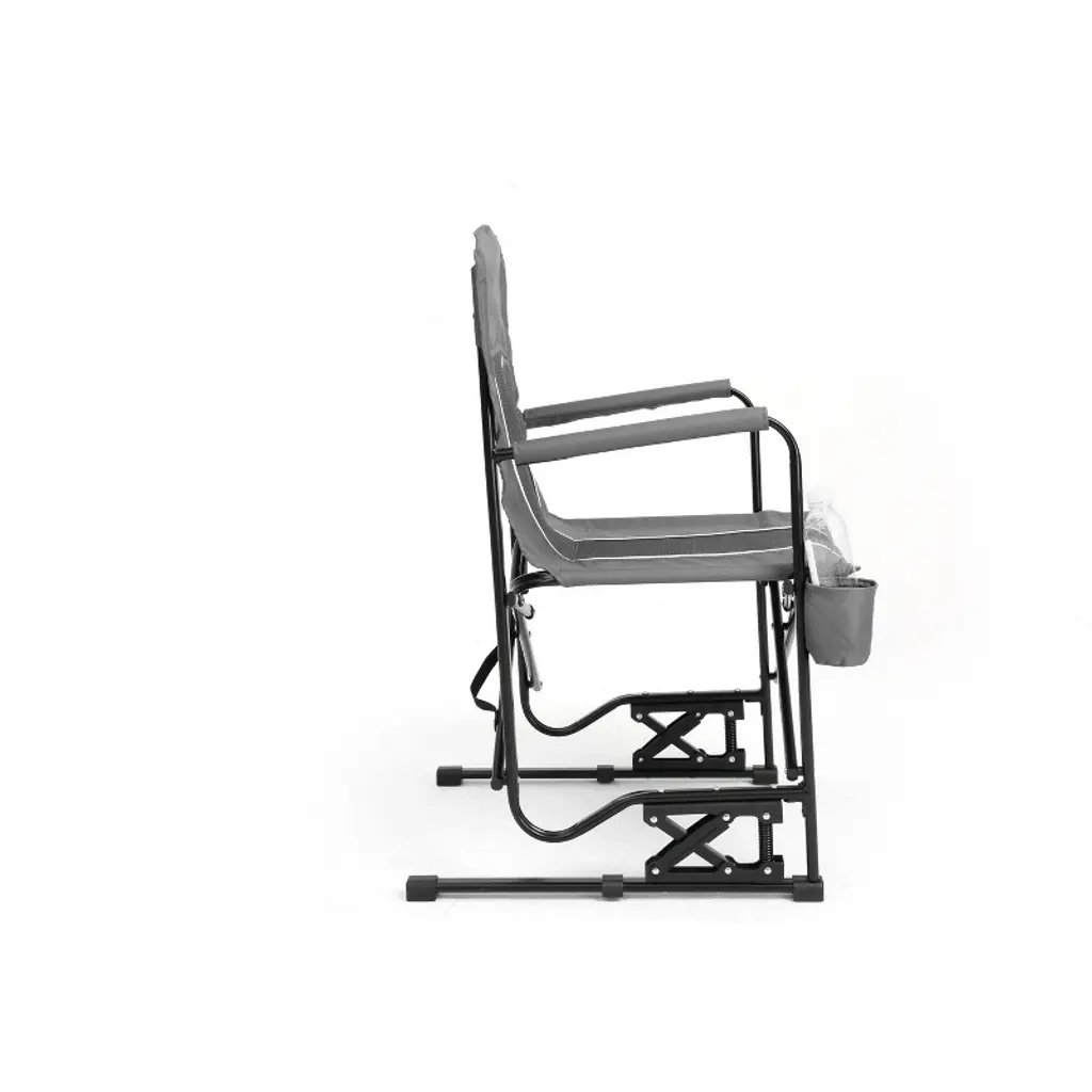 Outdoor Freestyle Rocker Camping Chair Portable Folding Rocking Chair With Solid, Durable Armrests, Drink Holder & Comfortable Backrest -Grey