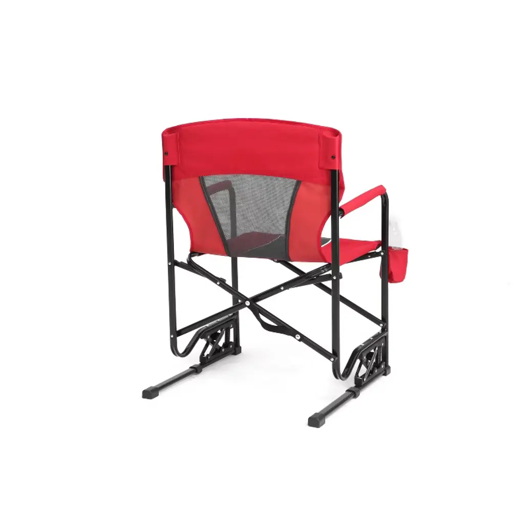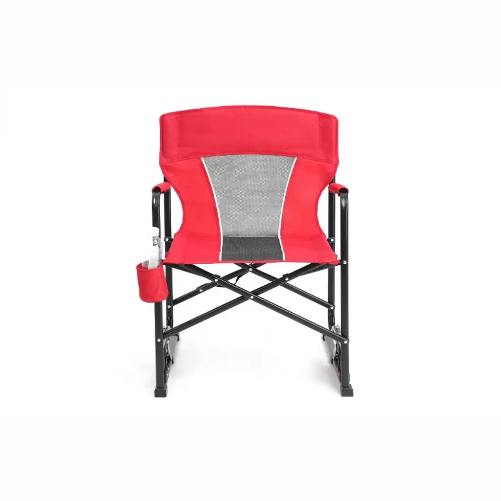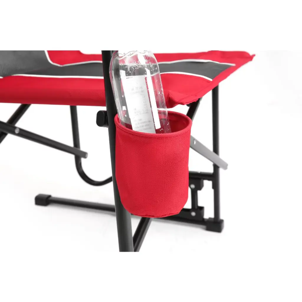 Outdoor Freestyle Rocker Camping Chair Portable Folding Rocking Chair With Solid, Durable Armrests, Drink Holder & Comfortable Backrest -Red