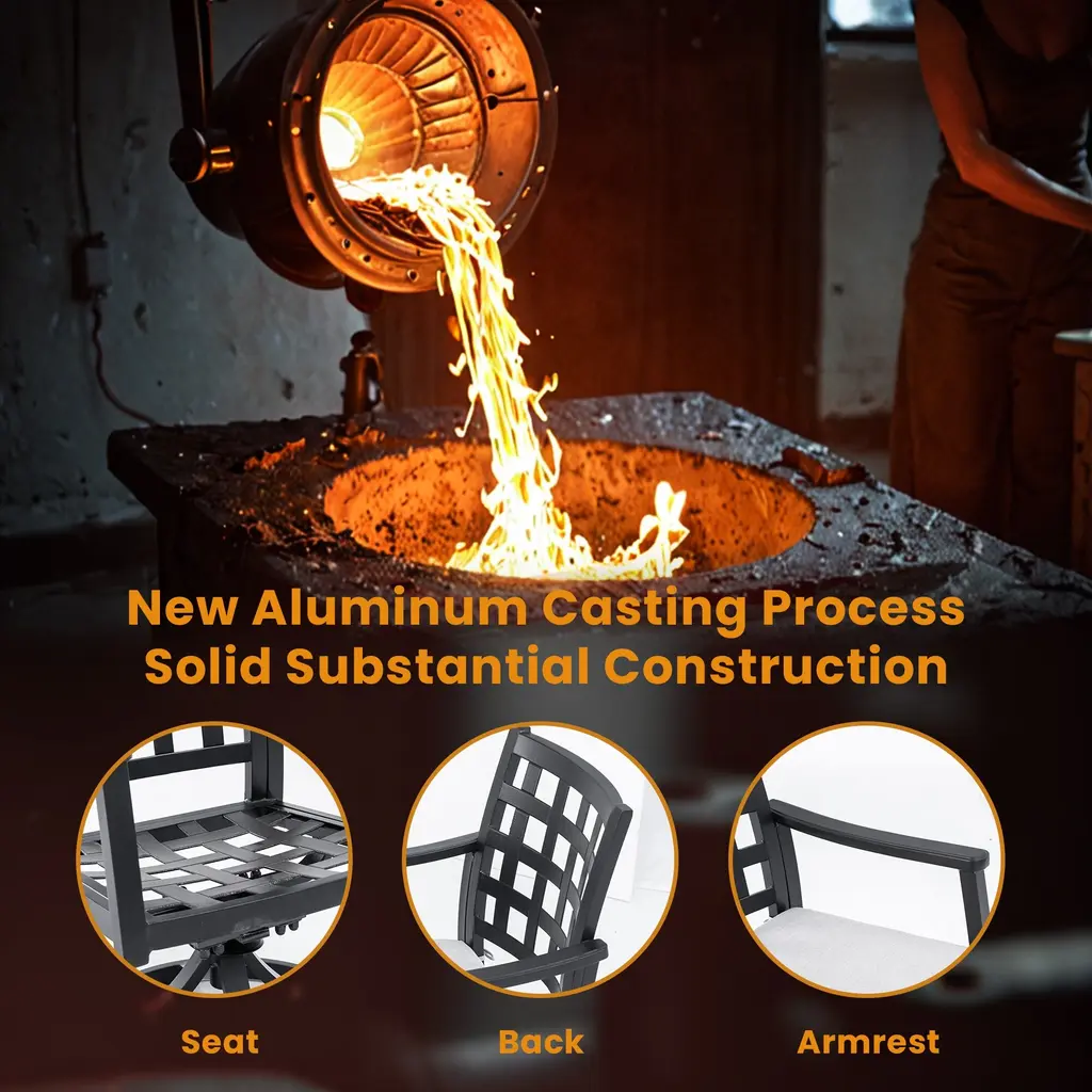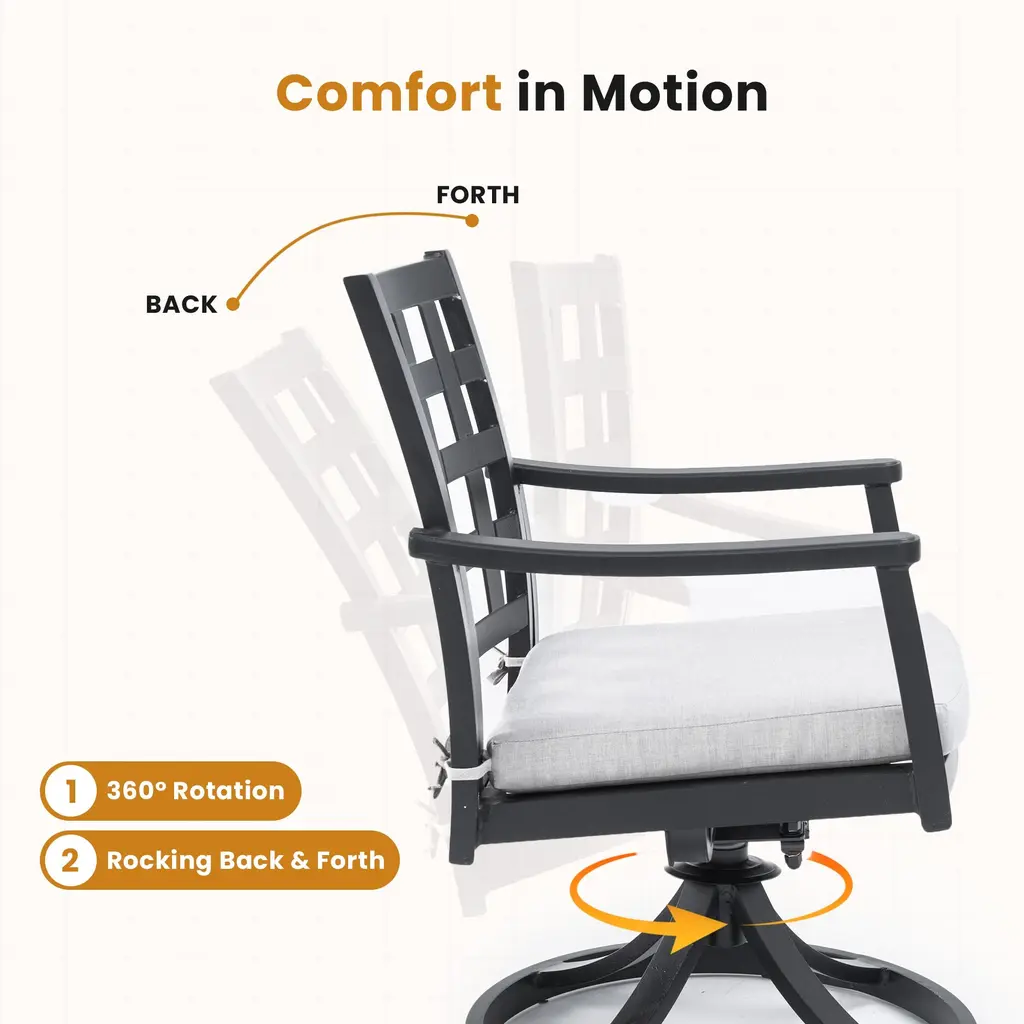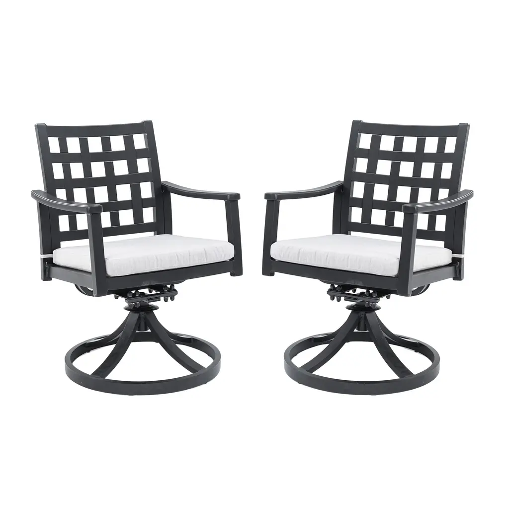 Outdoor Patio Cast Aluminum Swivel Rockers With Lattice Design - Ember Black