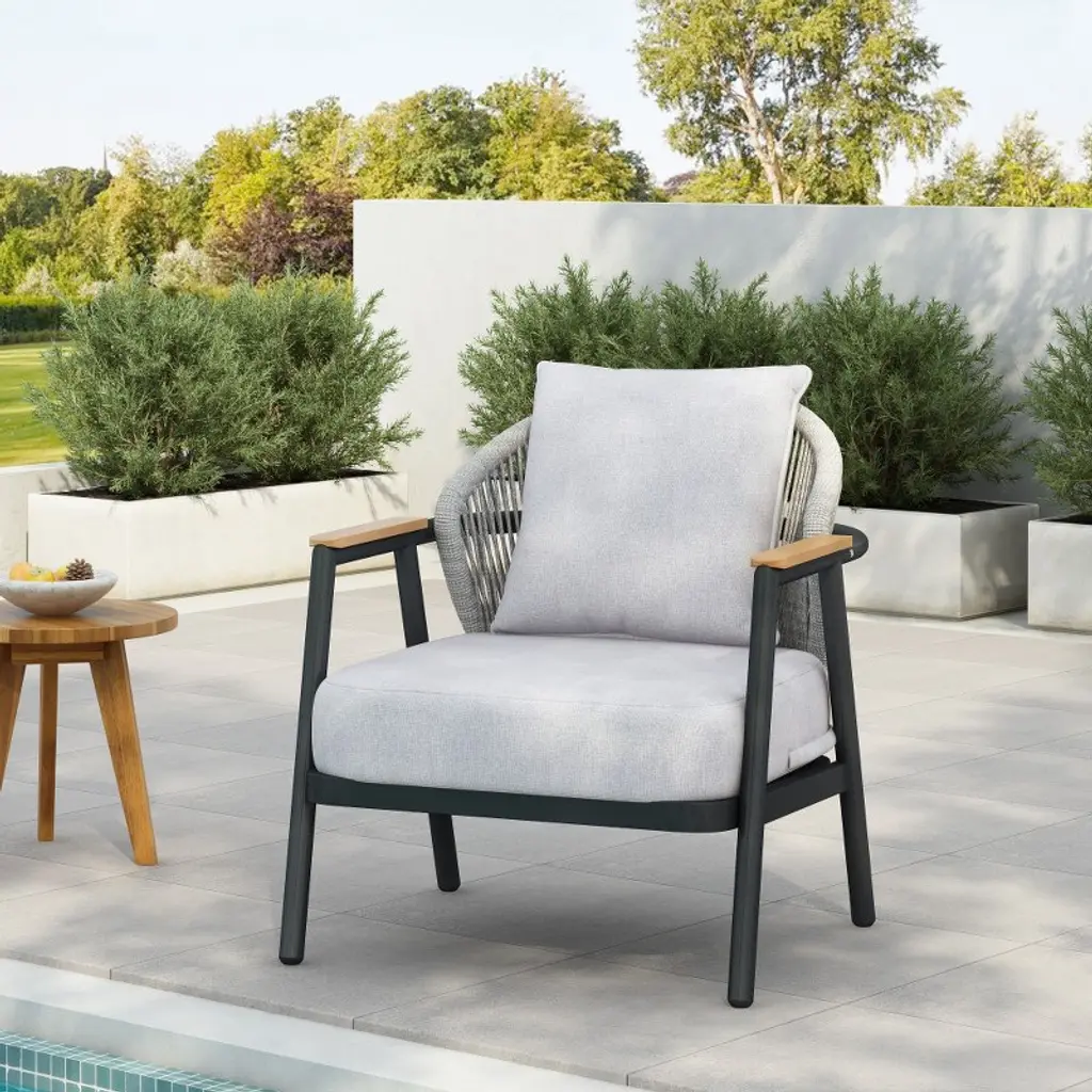 Outdoor Rocking Chair, Patio Rattan Rocker With Seat And Back Cushions, Outdoor Rocker With Wood Frame For Poolside, Balcony, Porch, Backyard, Gray