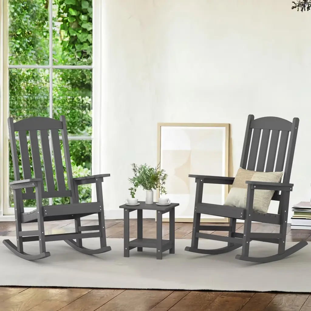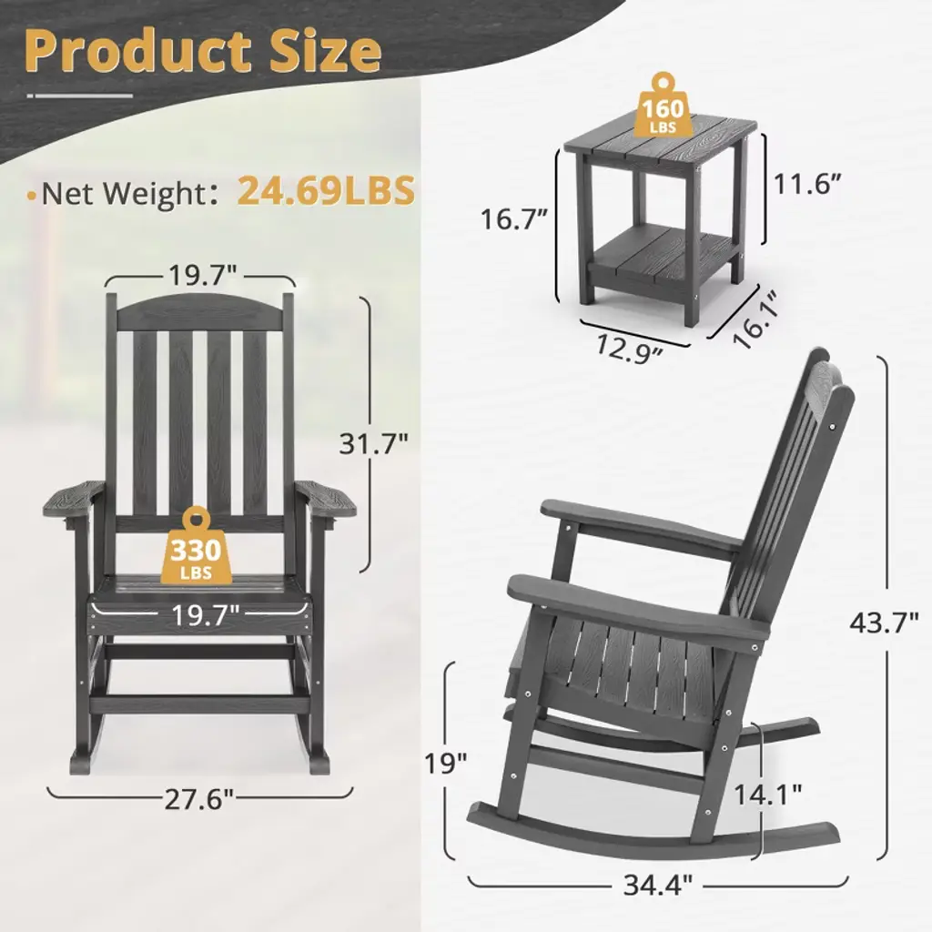 Outdoor Rocking Chairs Set, 1 Chairs & 1 Table Hdps Poly Rocking Chair, All Weather Resistant, Heavy Duty Rocker Chair For Patio, Lawn, Garden