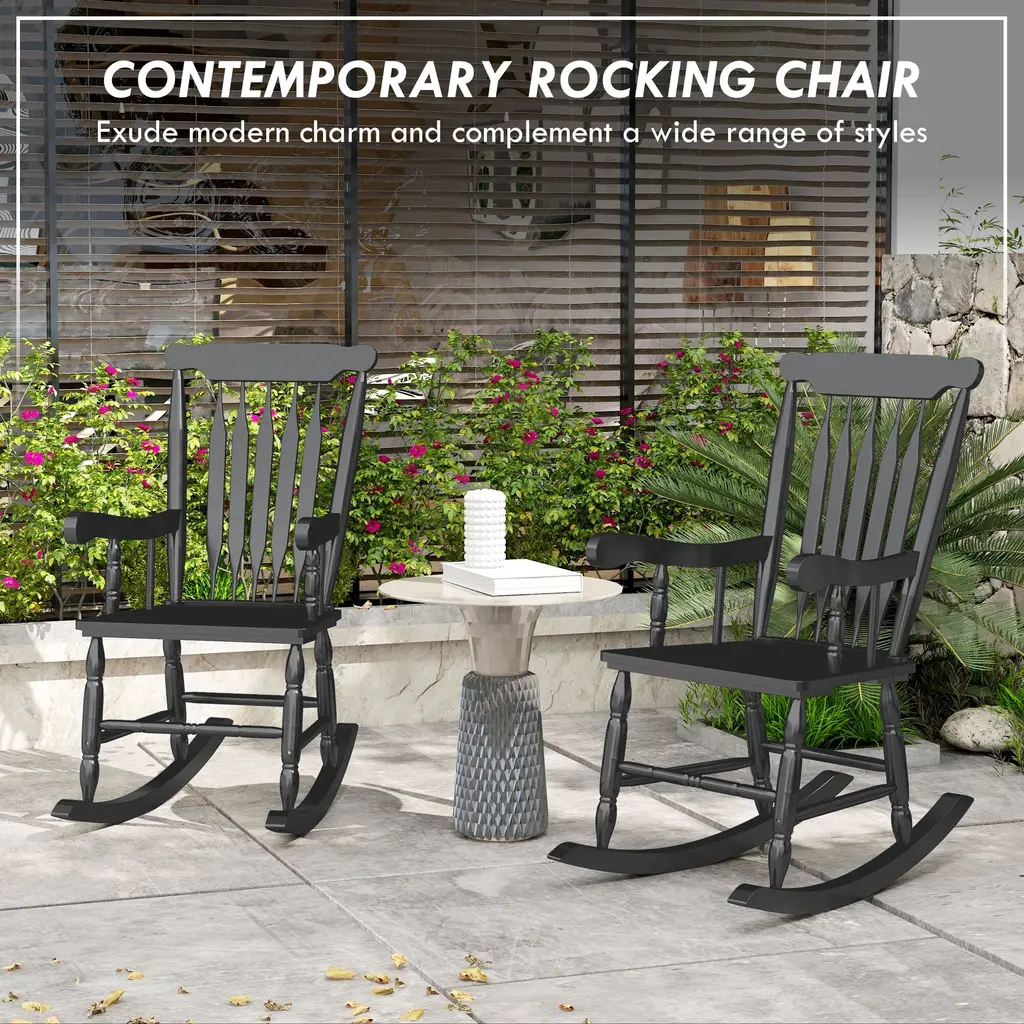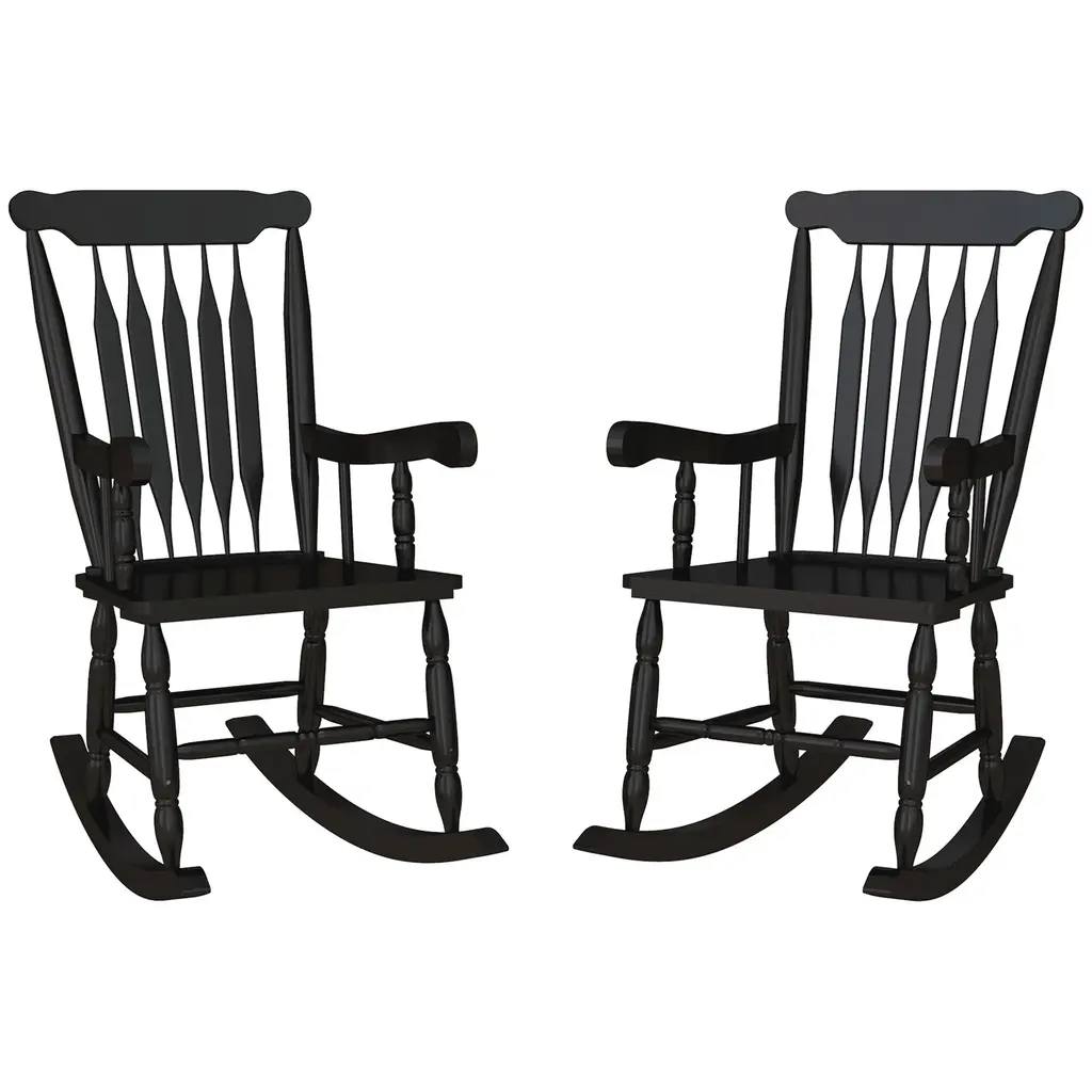 Outsunny Outdoor Wood Rocking Chairs Set Of 2 (Excluding The Table) - Black