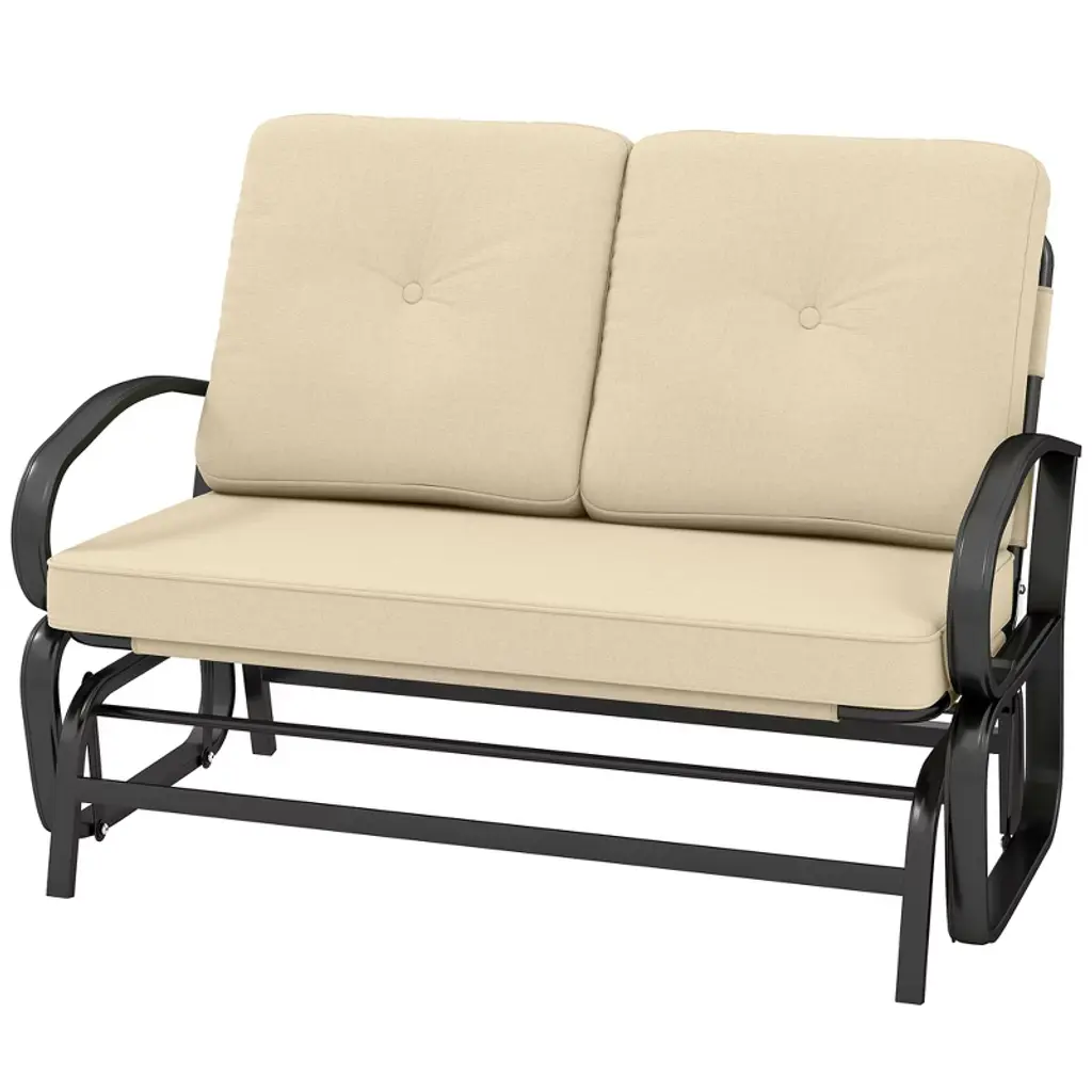 Bring indoor comforts outside with Outsunny. Our outdoor glider bench is a patio loveseat for two, making an excellent spot to break out a book or share the morning brew. Rock comfortably with a friend through the soft summer breeze, calmly, and quietly, making outdoor memories. Share an armrest with a friend; cushions comfortably coat all ends. Put on picnics, barbecues, and other events. It's easy to enjoy time outside with a glider for you. Get out, get comfortable, get Outsunny.