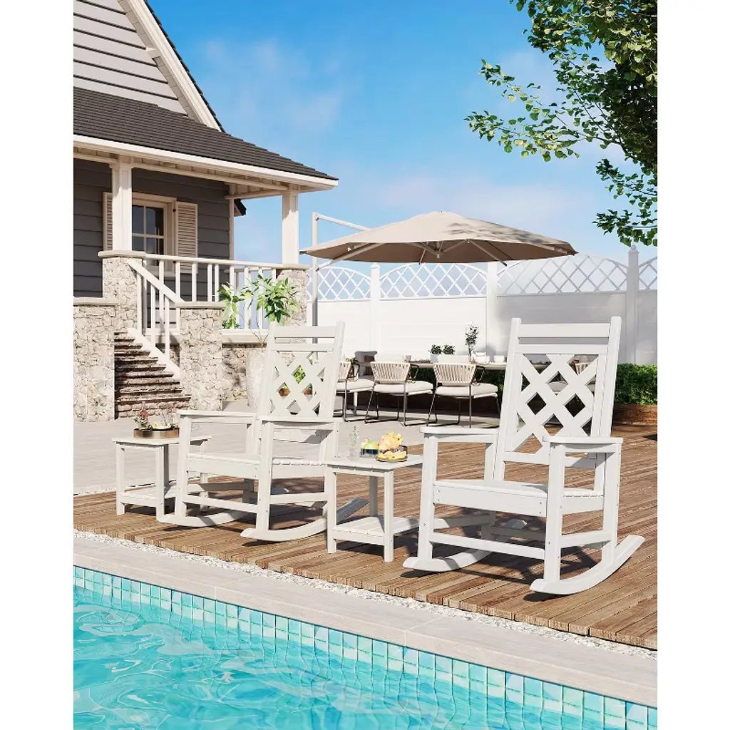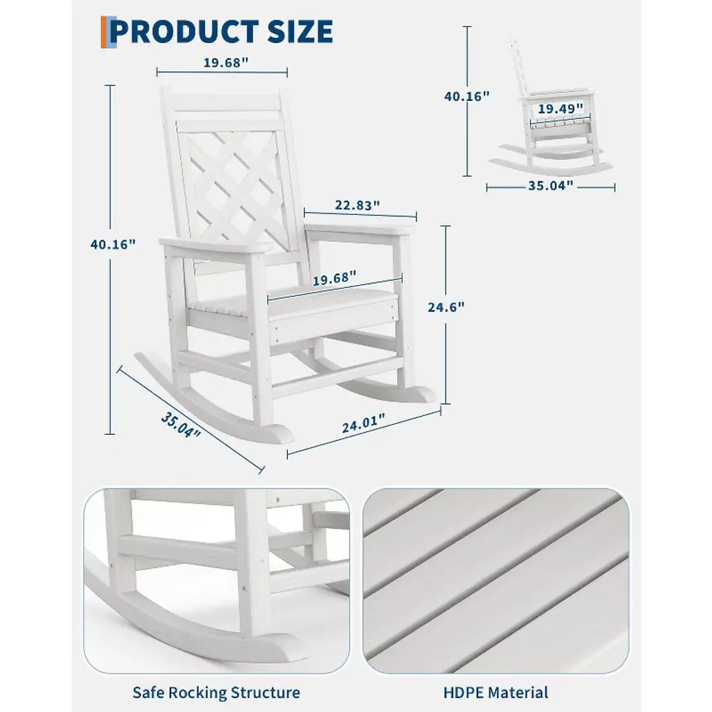 Oversized Rocking Chair Set Of 2 With Side Table - Hdpe Poly Lumber, 380lb Capacity & Weather-resistant For Patio, Pool, Deck,white