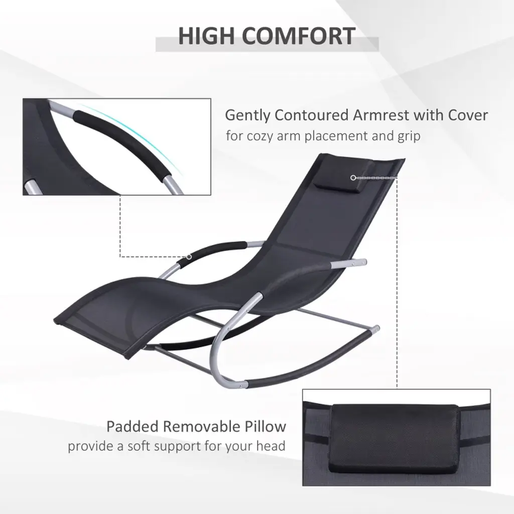 Paged Outdoor Patio Lounge Chair, Zero Gravity Rocking Chair Lawn Chairs With Detachable Pillow For Patio, Poolside, Beach, Lawn, Black