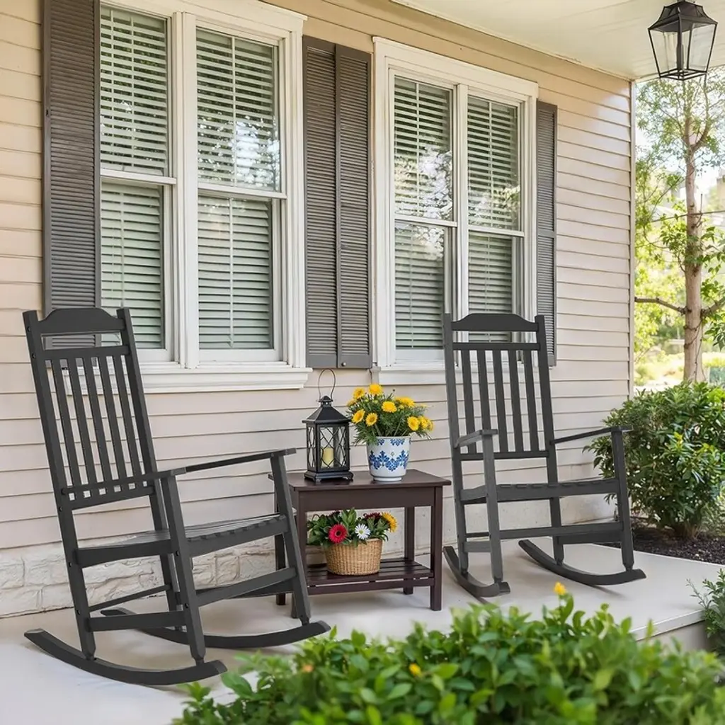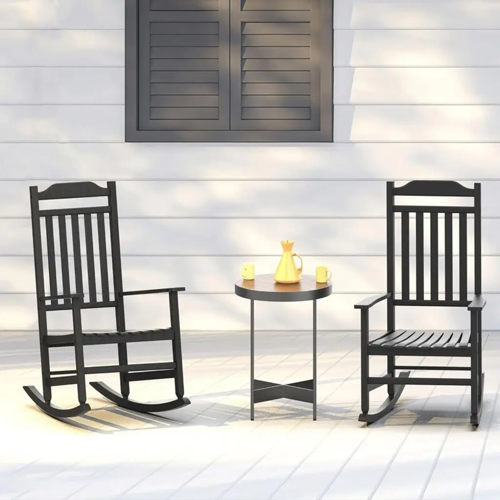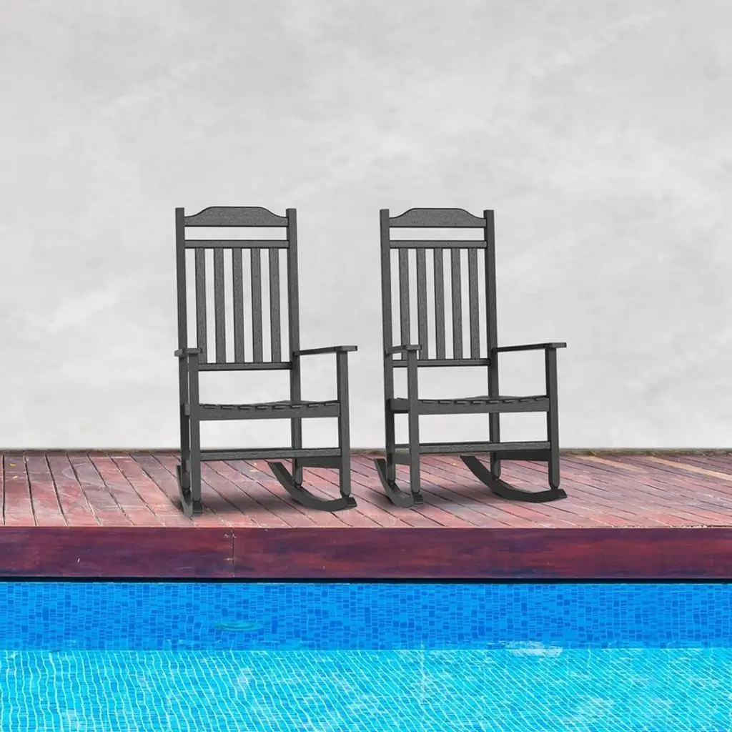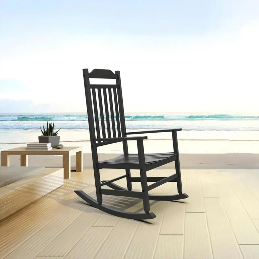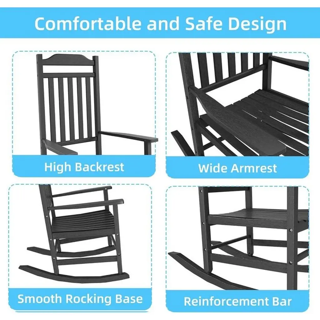 Patio Rocking Chair Outdoor ,Weather Resistant Poly Resin Oversized Porch Rocker,high Back Smooth Design,indoor Outdoor Use - Antique Black