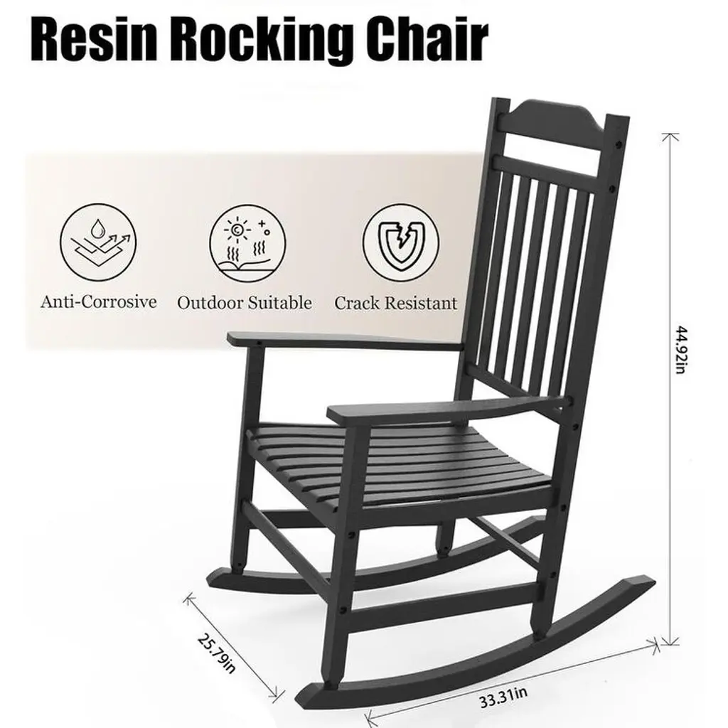 Durable & Stylish Resin Rocking Chair for Effortless Outdoor Relaxation Enhance your porch, patio, or garden with this Weather-Resistant Resin Rocking Chair, designed to mimic the warmth of real wood while offering unparalleled durability. Crafted from eco-friendly, recyclable resin, this chair resists splintering, cracking, and corrosion, making it ideal for year-round outdoor use with zero maintenance.Key Features: