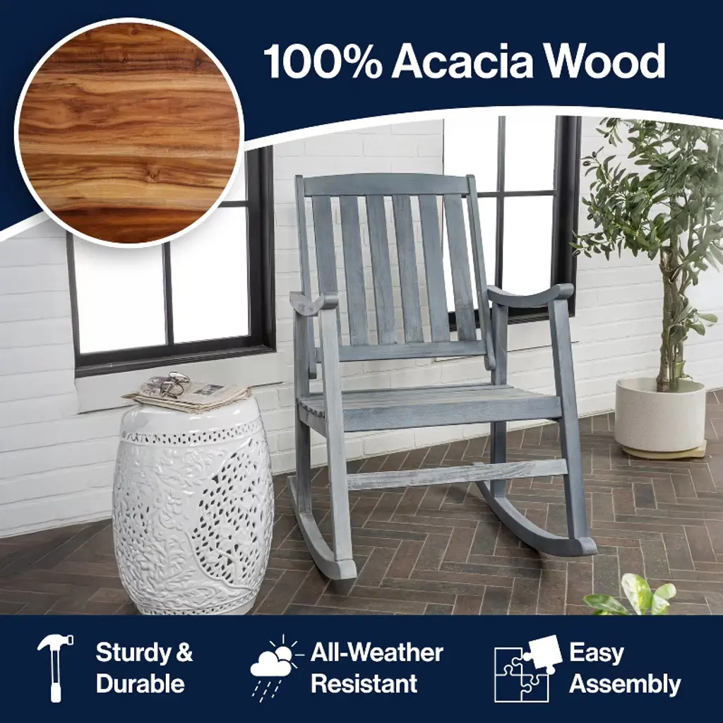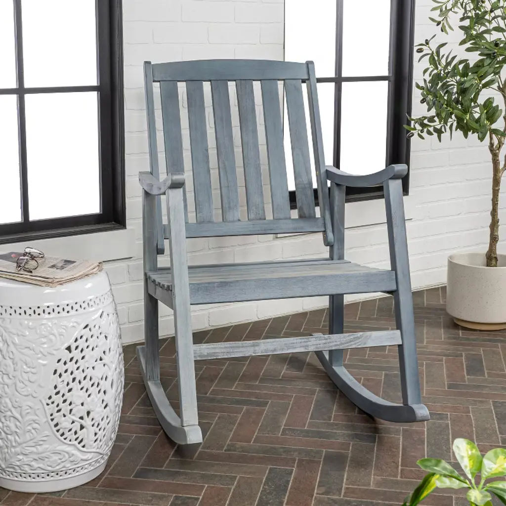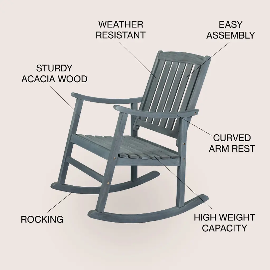 Penny Classic Slat-back Acacia Wood Patio Outdoor Rocking Chair, Gray - Jonathan Y
