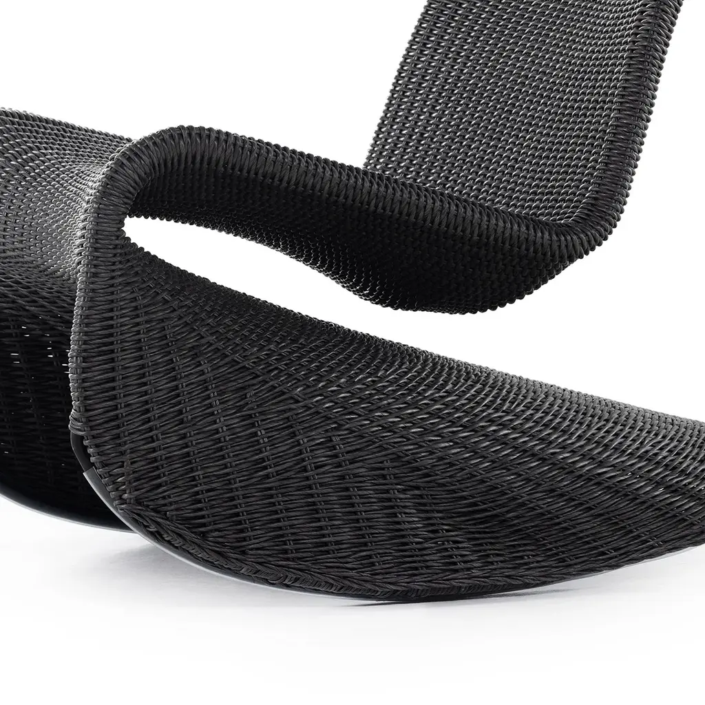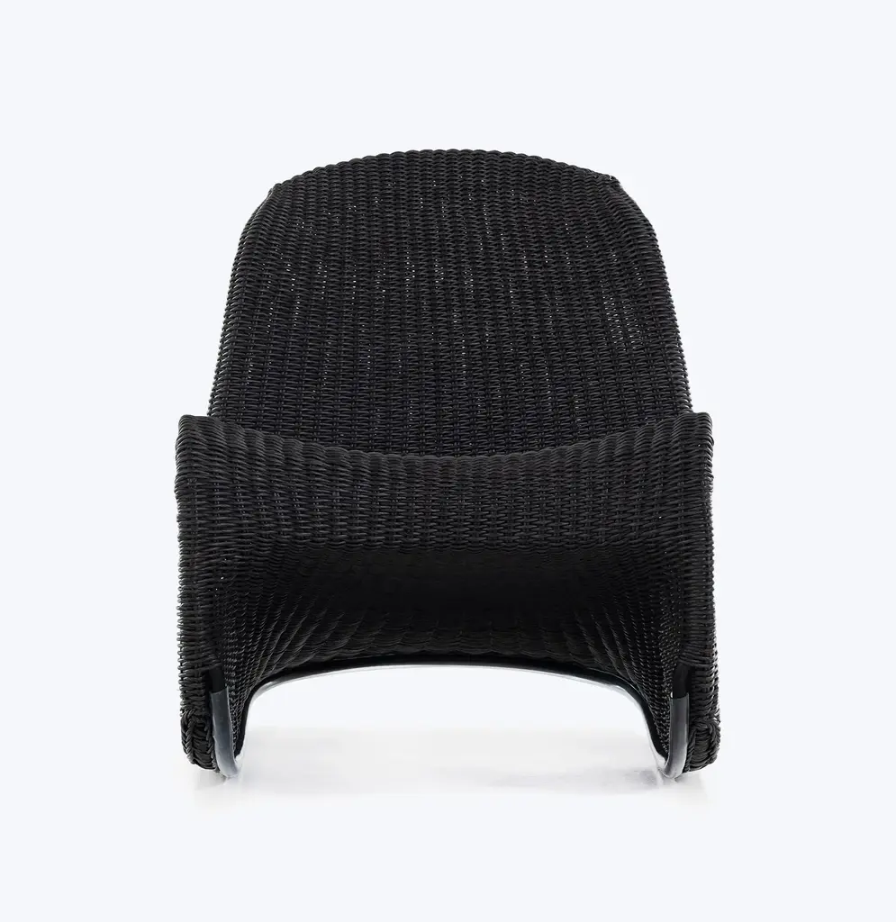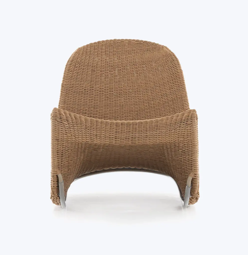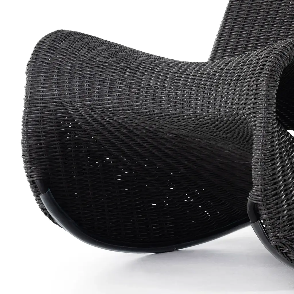 The Portia Outdoor Rocking Chair is based on a vintage shape full of dramatic curves. This all-weather wicker seating brings modern movement to this statement-making rocking chair. Cover or store indoors during inclement weather and when not in use.