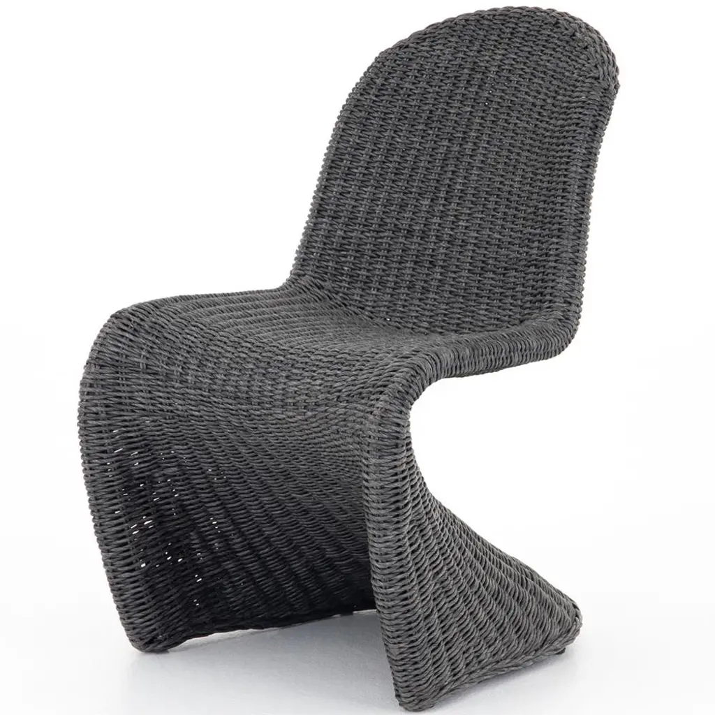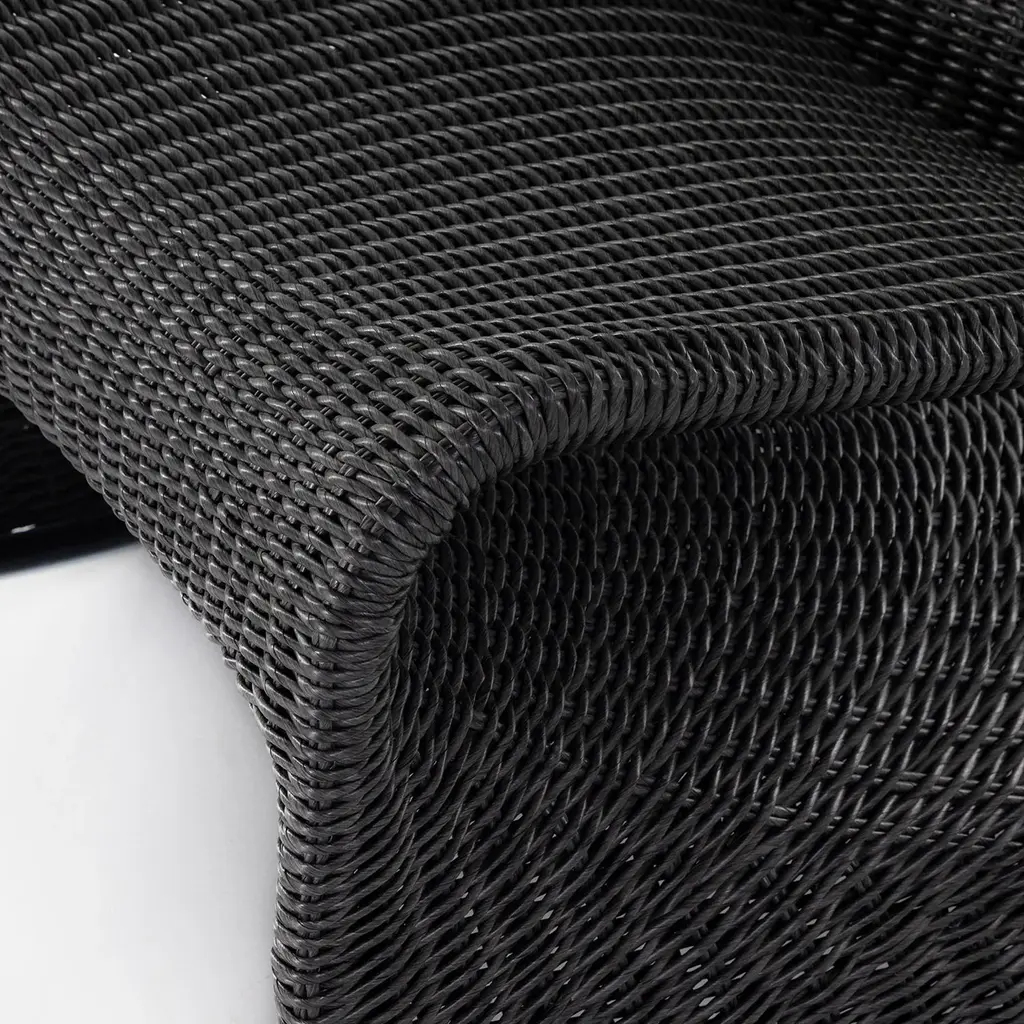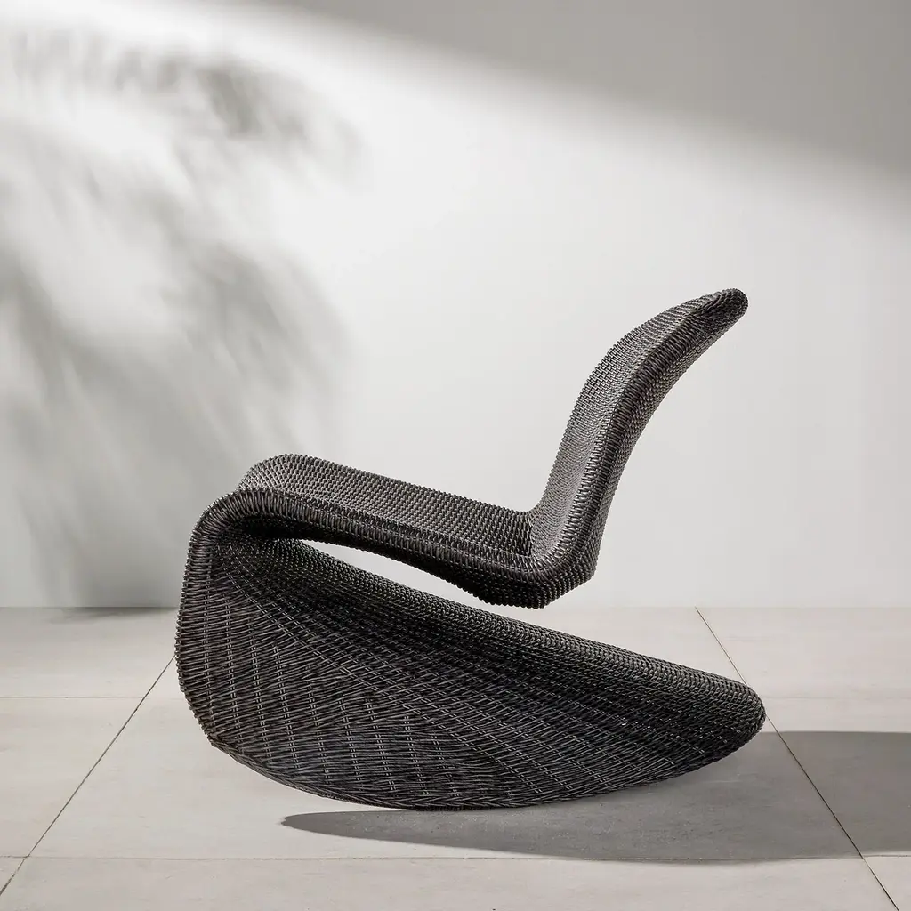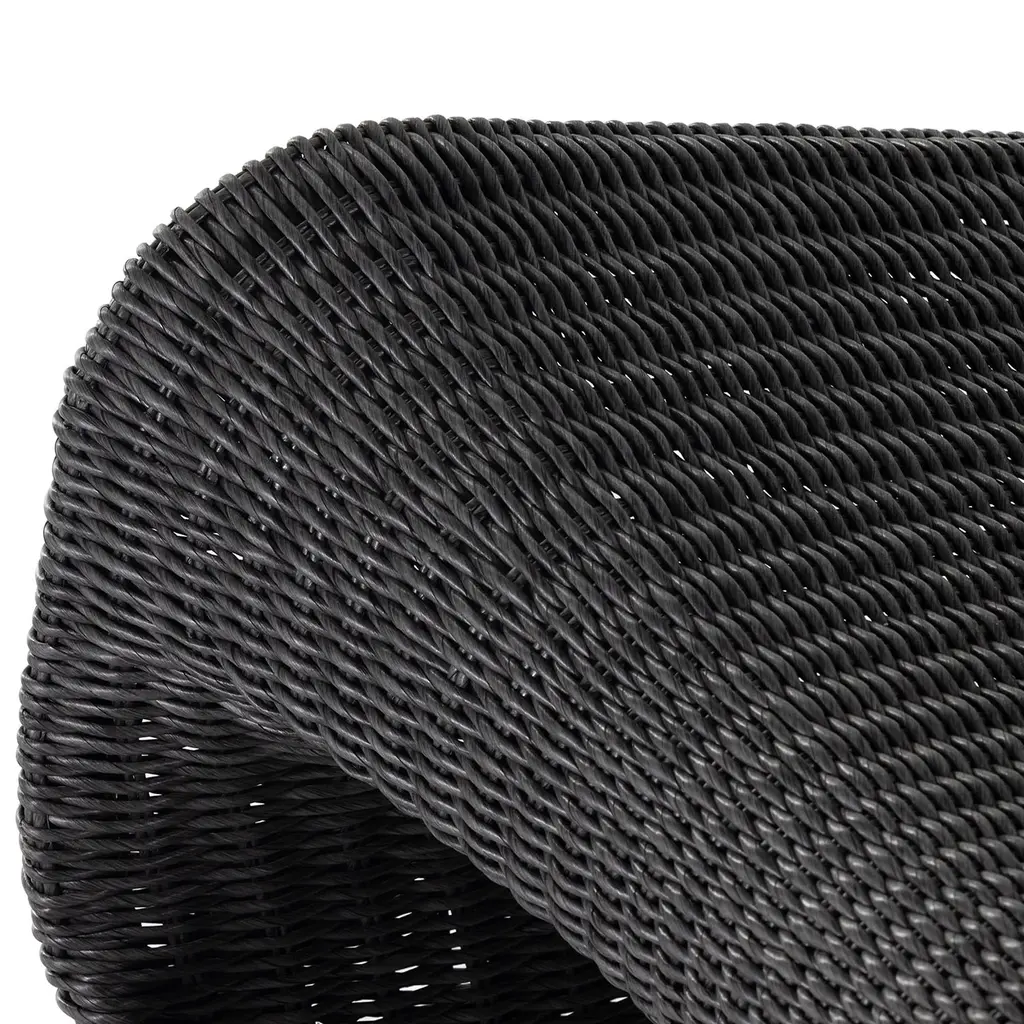 The Portia Outdoor Rocking Chair is based on a vintage shape full of dramatic curves. This all-weather wicker seating brings modern movement to this statement-making rocking chair. Cover or store indoors during inclement weather and when not in use.