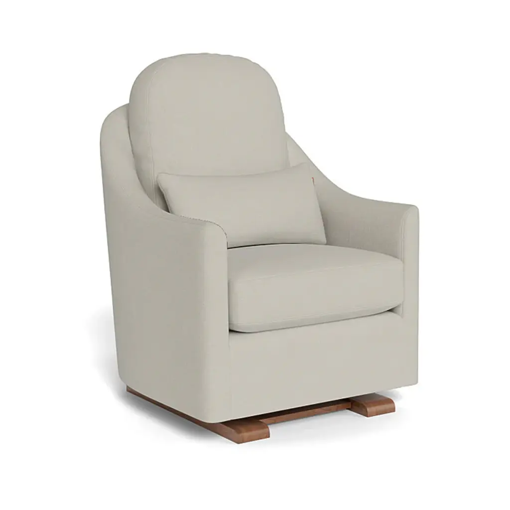 This modern rocking chair features a cozy rounded design with firm and comfortable cushioning. Sitting atop a Scandinavian-inspired wood base, our Quinn rocking chair offers a fresh look for any bedroom, nursery or living room.