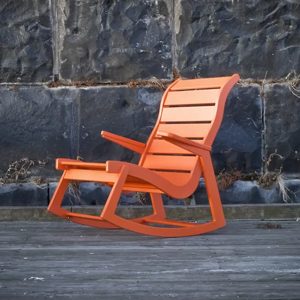 It's been more than sixty years since the introduction of Ralph Rapson's Rapid Rocker. Loll pays tribute to that iconic mid-century modern design with the Loll Designs Rapson High Back Rocker. With the same comfortable curves and smooth rocking motion as the original, this Rapson Rocker differs in the material used to make it: recycled milk jugs and High-density Polyethylene (HDPE).