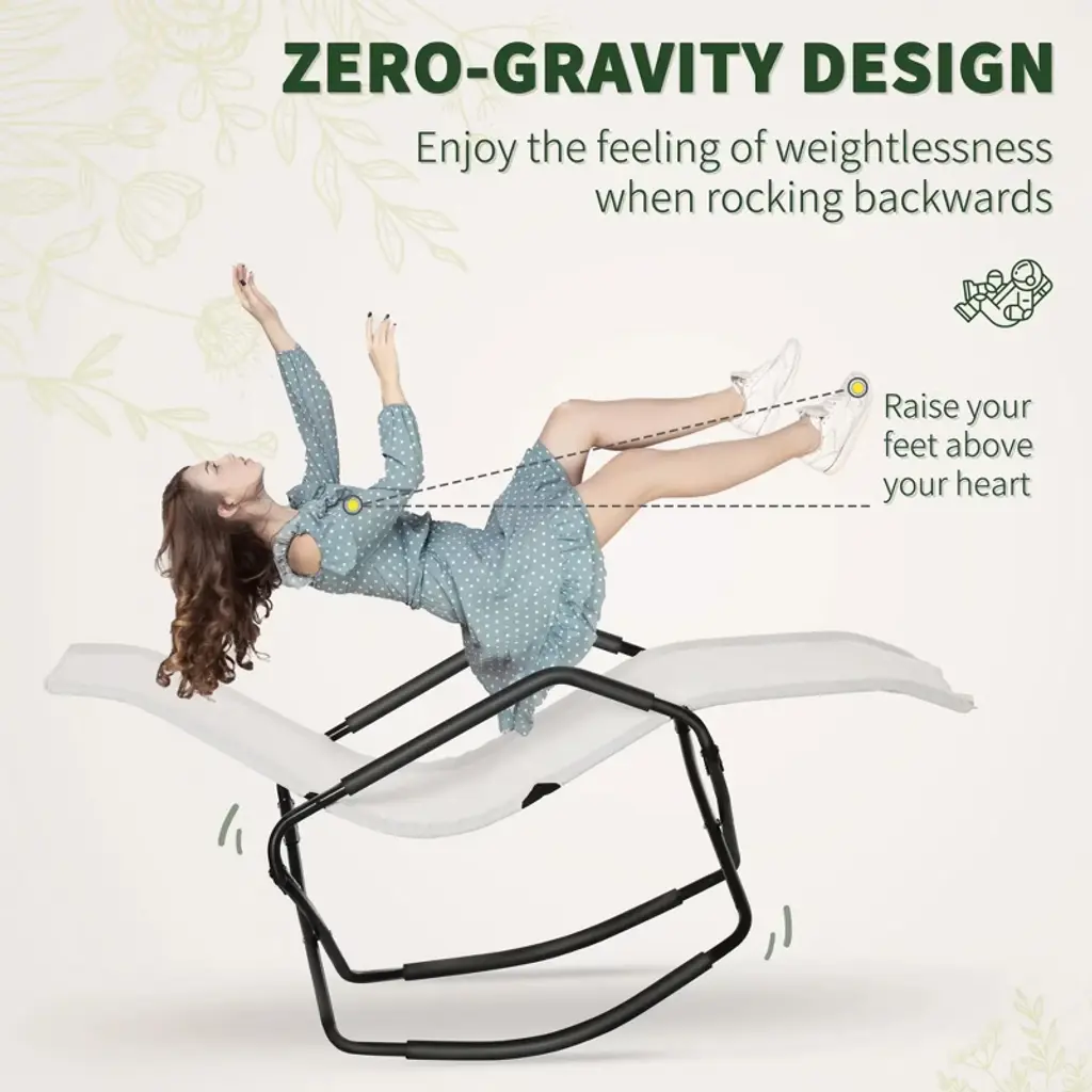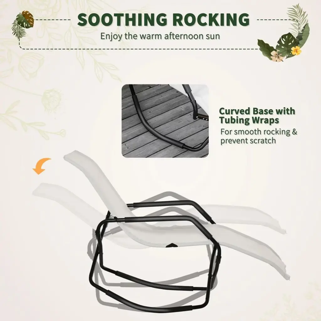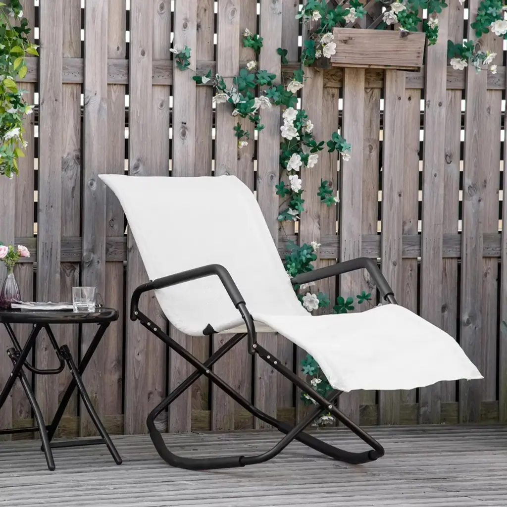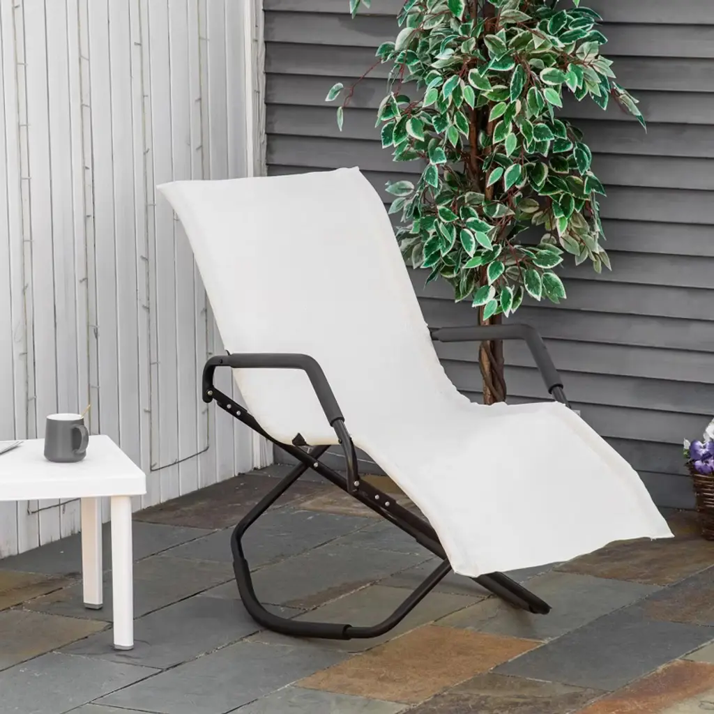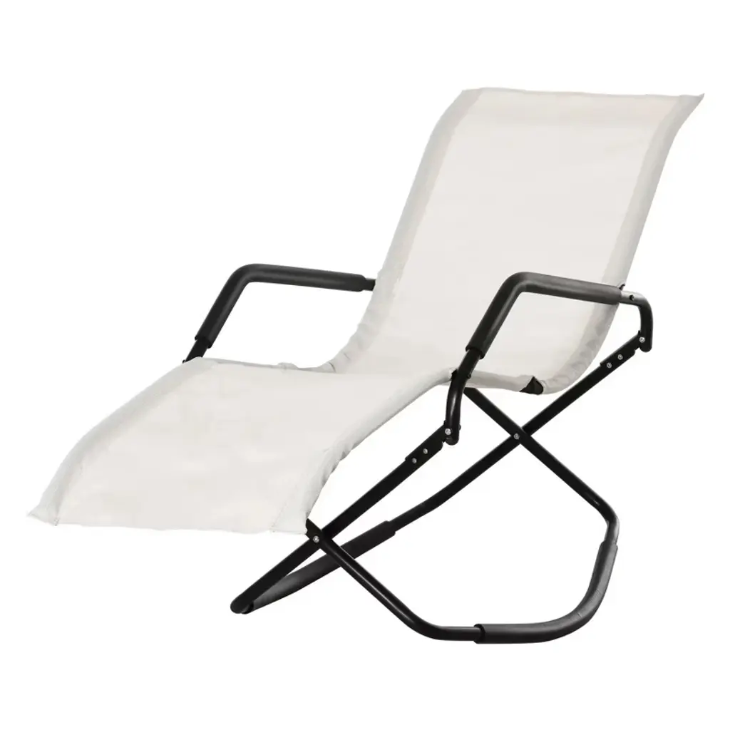 Resenkos Outdoor Folding Rocking Chair, Foldable Chaise Lounge Pool Chair, Zero Gravity Lounge Chair With Armrests For Sun Tanning, Cream White