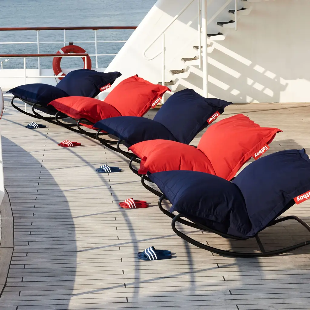 The Rock ‘n Roll takes the classic rocking chair and flips it—literally. A sturdy metal frame paired with wide, flexible webbing turns any Fatboy bean bag into an oversized rocker built for serious lounging. It’s minimalist in looks but engineered for comfort, whether you’re on the porch, the patio, or parked inside for the evening. Compatible with nearly every Fatboy Original or Slim bean bag (sold separately), the frame assembles quickly and breaks down just as easily. An anti-slip layer keeps things steady, and the included Rockblocker stops the motion when you want to stay still. Matte-finish neutrals keep the look clean and adaptable. The vibe? Relaxed, with just enough movement to remind you to slow down.