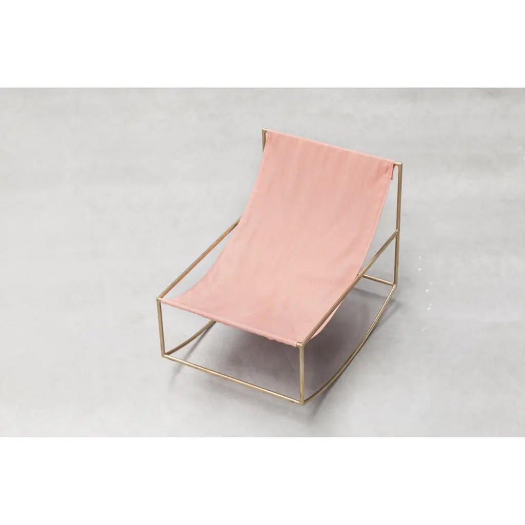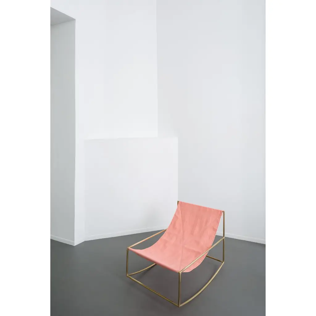The Rocking Chair by valerie objects is a modern, minimalist rocking chair with a strikingly simple structure, consisting of a geometric metal frame with a simple linen seat in the center. The empty space and sense of transparency play a key role in the design of the Rocking Chair – the seat appears to be almost floating in the air. The Rocking Chair also does not cover the space around it, leaving its background and surroundings visible. Designed by design studio Muller Van Severen, the Rocking Chair is both a fascinating eye-catcher in the living room and a stunning interior design element in a variety of public spaces.
