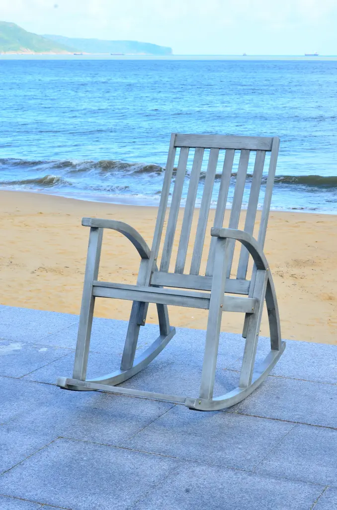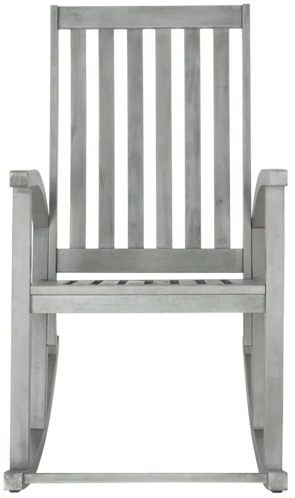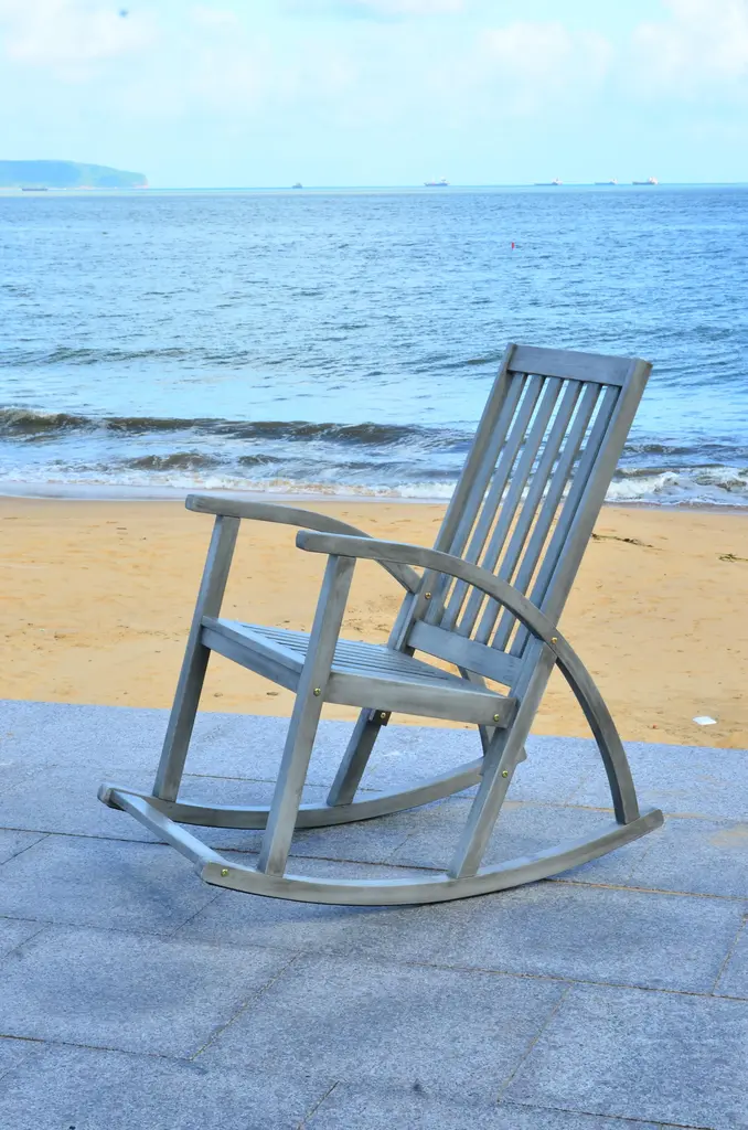 The Rocking chair updates a time-proven country porch classic with new contemporary bentwood sides. Masterfully crafted of sustainable acacia wood with a grey wash finish, this piece is designed for long wear, comfort and ease of care. Store outdoor furniture indoors or cover well when not in use. Remove wooden furniture from standing water. Dust regularly with small brush or vacuum. Spills should be taken care of immediately before they harden or stain with a slightly dampened sponge. Do not use bleach solutions. Some assembly required.