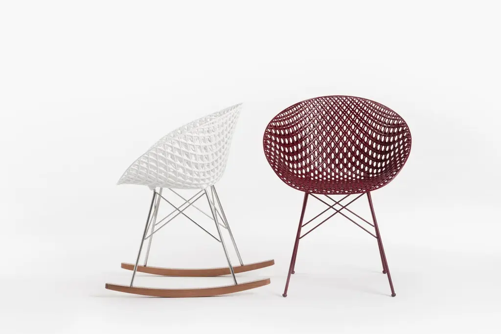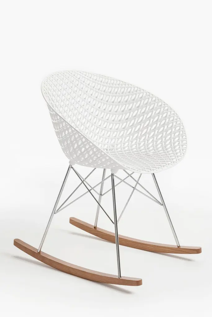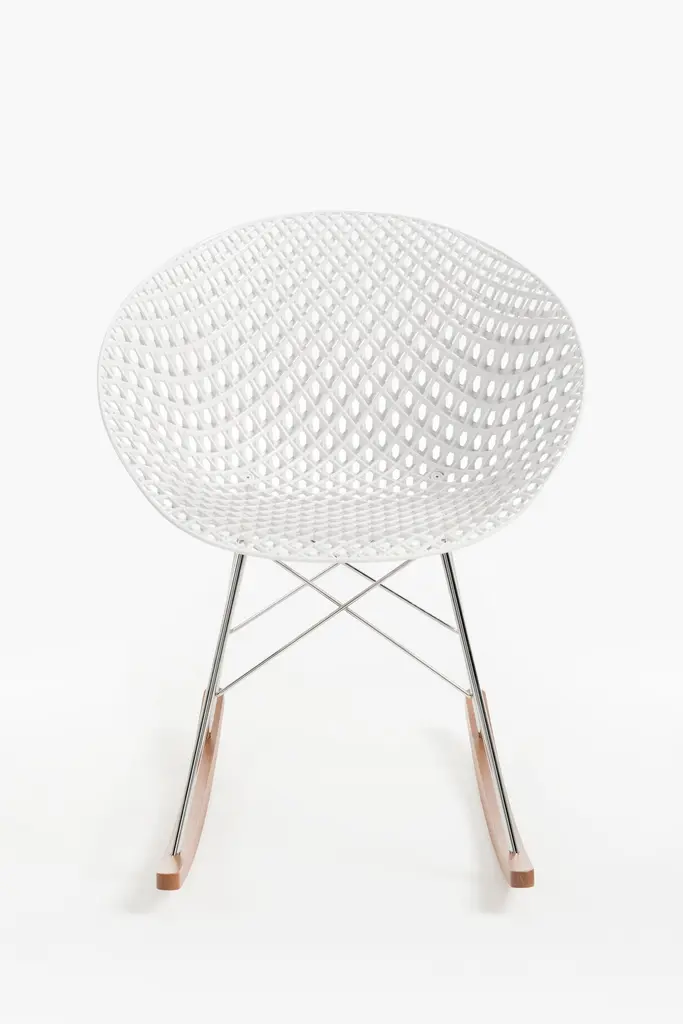 Set 2Kartell Smatrik Rocking Chair In White With Chrome Legs By Tokujin Yoshioka