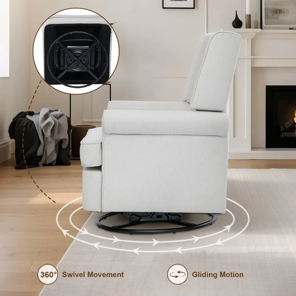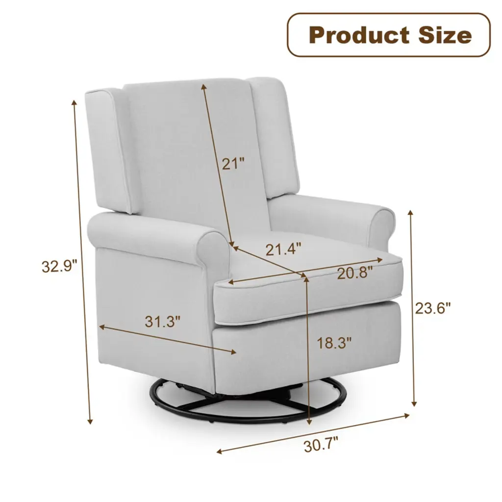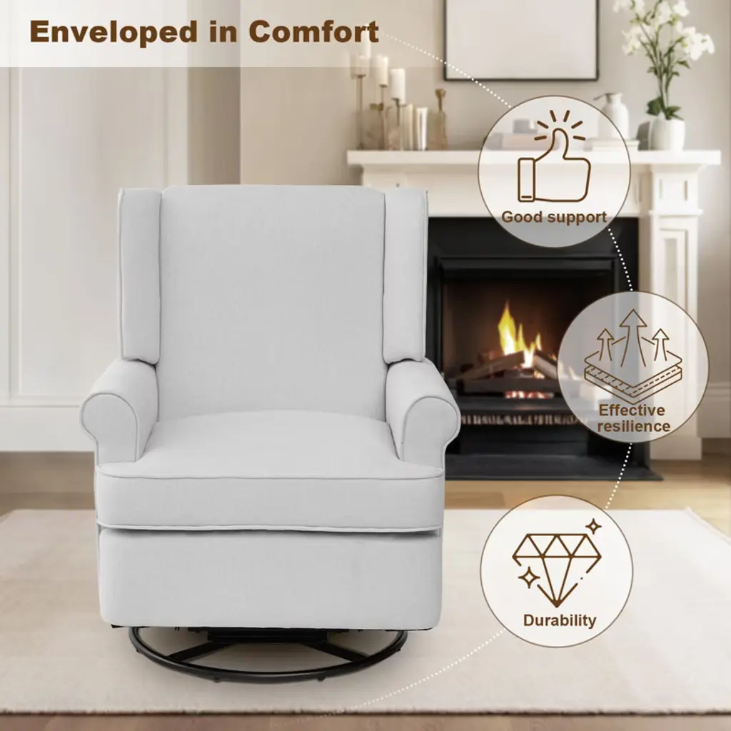 Experience ultimate comfort and style with our Swivel Rocker Chair, designed to enhance any living room, bedroom, or office space. This versatile swivel glider features a 360° smooth rotation, allowing you to relax and move freely without any restrictions. Upholstered in soft, breathable linen fabric, the chair offers a cozy and inviting seat perfect for unwinding after a long day. Crafted with durable iron framing and high-density sponge cushioning, this rocking chair combines strength and comfort for long-lasting use. Its modern design fits seamlessly into both indoor and outdoor settings, making it a flexible addition to your home or workspace. Whether you're reading, working, or simply relaxing, the gentle rocking motion provides soothing comfort. Key Features: - Smooth 360° swivel rotation for easy movement and flexibility - Comfortable linen upholstery with plush sponge padding for maximum comfort - Sturdy iron frame ensures durability and stability - Modern and stylish design suitable for living rooms, bedrooms, offices, and outdoor areas - Ideal for relaxation, reading, or casual seating Upgrade your seating experience with this comfortable and durable swivel glider rocking chair, perfect for creating a relaxing atmosphere wherever you need it.