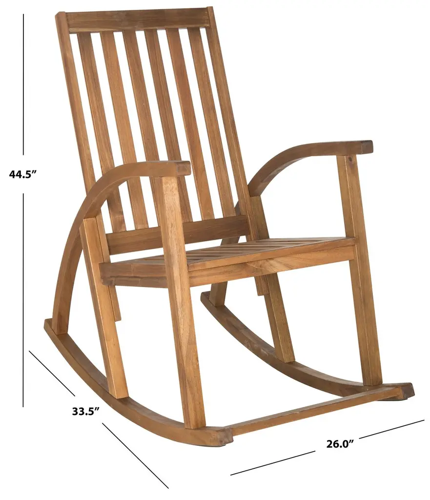 The Tallis rocking chair updates a time-proven country porch classic with new contemporary bentwood sides. Masterfully crafted of sustainable acacia wood, this piece is designed for long wear, comfort, and ease of care.