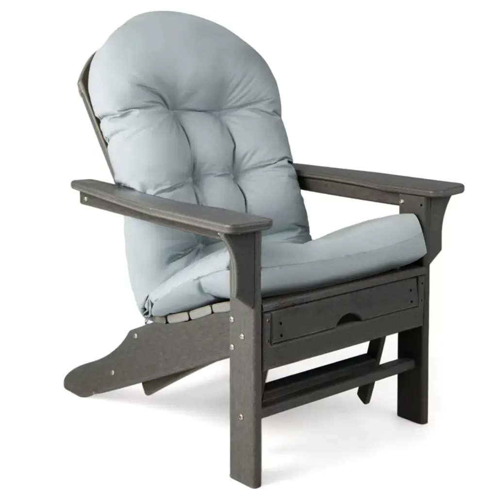 Enhance your relaxation with this premium Adirondack chair cushion designed for ultimate comfort. Crafted with top-grade PP cotton and a durable polyester cover, this seat cushion offers a long service life and optimal softness. The tufted design and premium sewing technology ensure durability, while the high-back design provides full-body support. Whether indoors or outdoors, this cushion is suitable for most chairs, thanks to its perfect size. The 5" thickened cushion guarantees maximum comfort, helping you unwind and de-stress. For an even better experience, fluff the cushion regularly. Treat yourself to a more comfortable sitting experience with this Adirondack chair cushion.FeaturesQuick rebound and high-level softness for a better sitting experience Durable polyester cover with stable sewing for long-lasting durability High-density PP cotton provides optimal comfortSpecifications:Color: Black / Grey / Beige Material: Polyester, PP Cotton Overall Dimension: 49" x 23" x 5" (L x W x Thickness) Length of Back: 32" Length of Seat: 17" Net Weight: 11 lbs Package Includes: 2 x Adirondack Chair Cushion