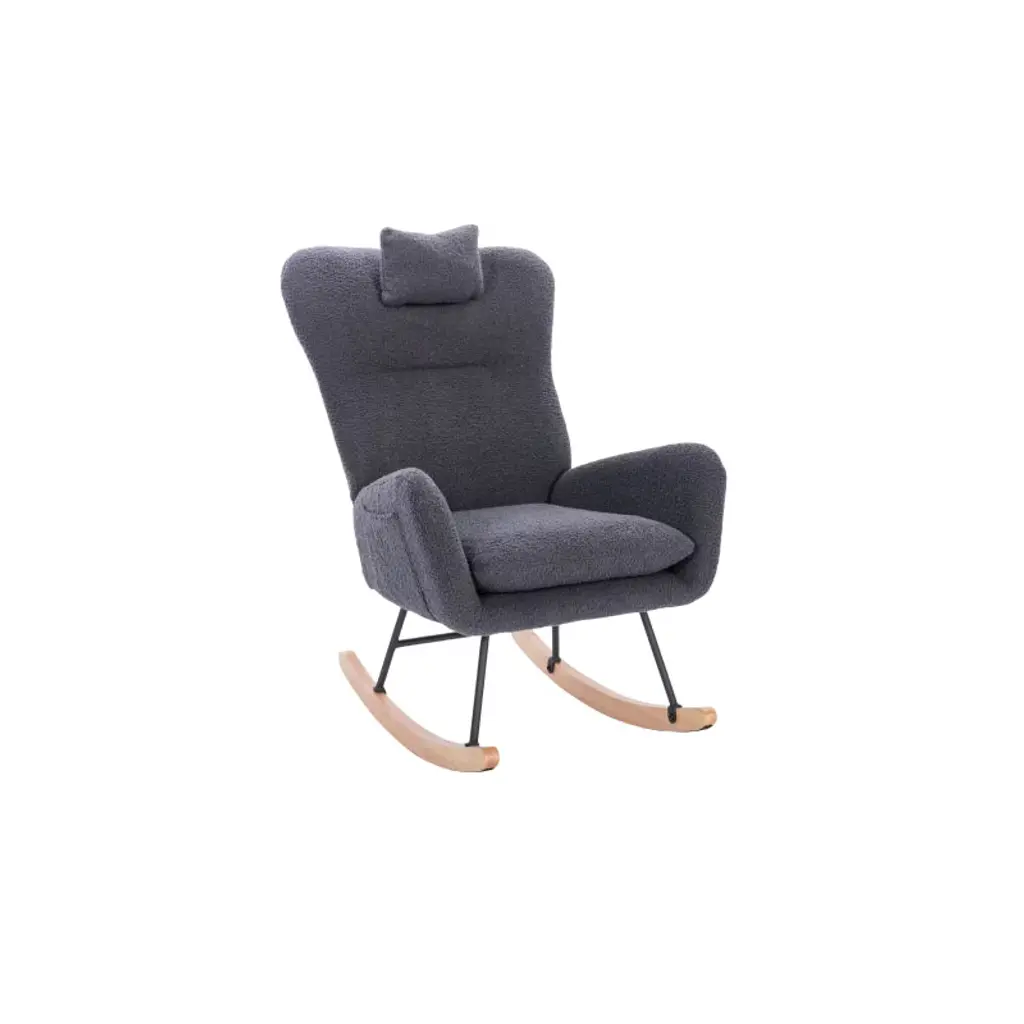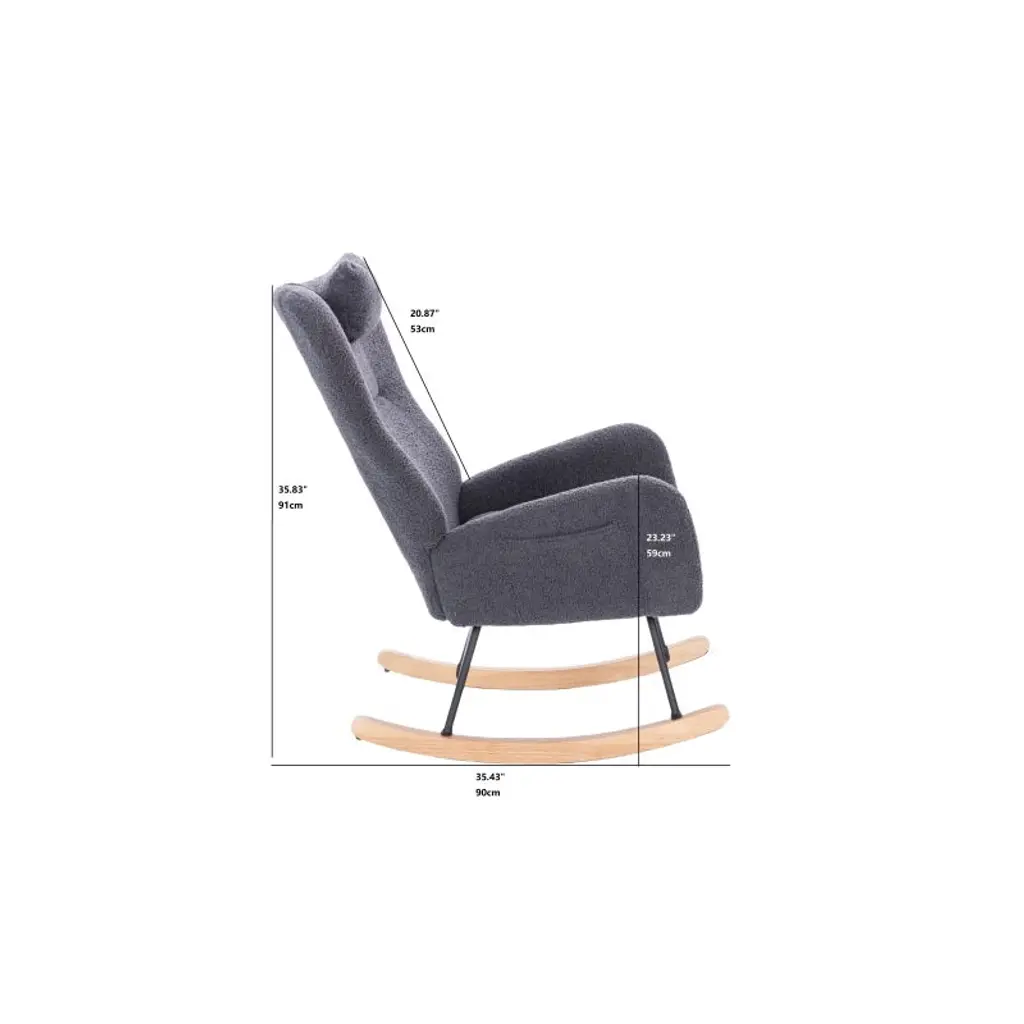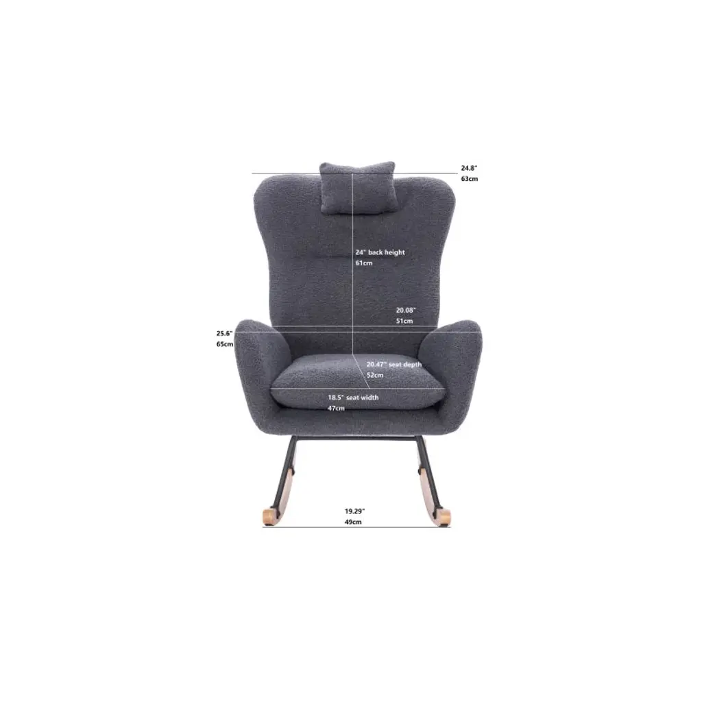 [ERGONOMIC & ELEGANT DESIGN - High backrest and armrest provides you with comfort.] [STURDY & DURABLE FRAME - The rocker relax chair is made of steel and solid wood.] [ERGONOMIC DESIGN - The backrest is ergonomically curved.] [EASY ASSMBLE - This rocking arm chair is very easy to assemble.] [SOFT AND THICK SEAT - The high back and thick seat cushion are filled with sponge.]