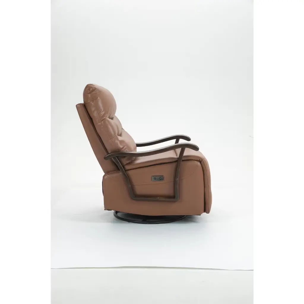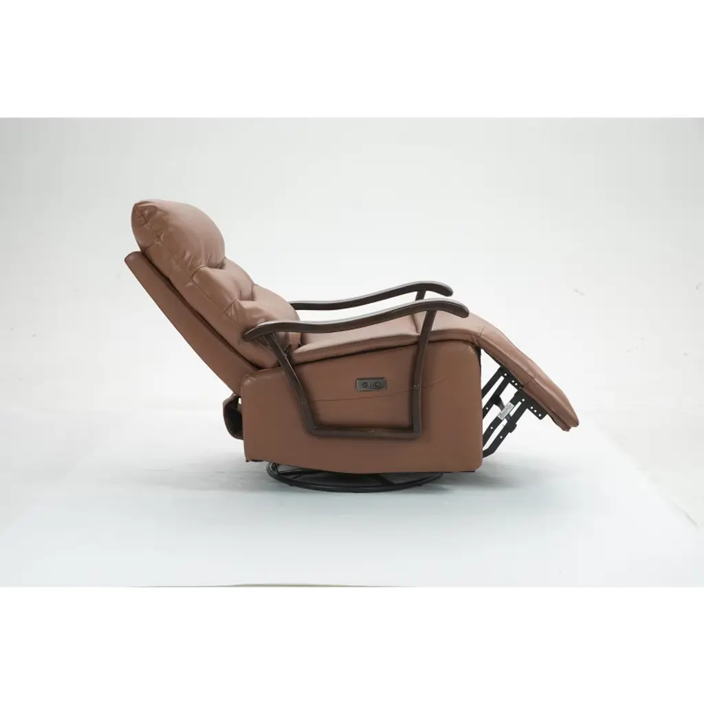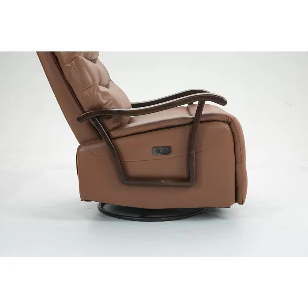 Tiramisubest Swivel Rocker Recliner Power Glider Chair With Solid Wood Armrests - Extra Wide Reclining Sofa Chair Upholstered Faux Leather L