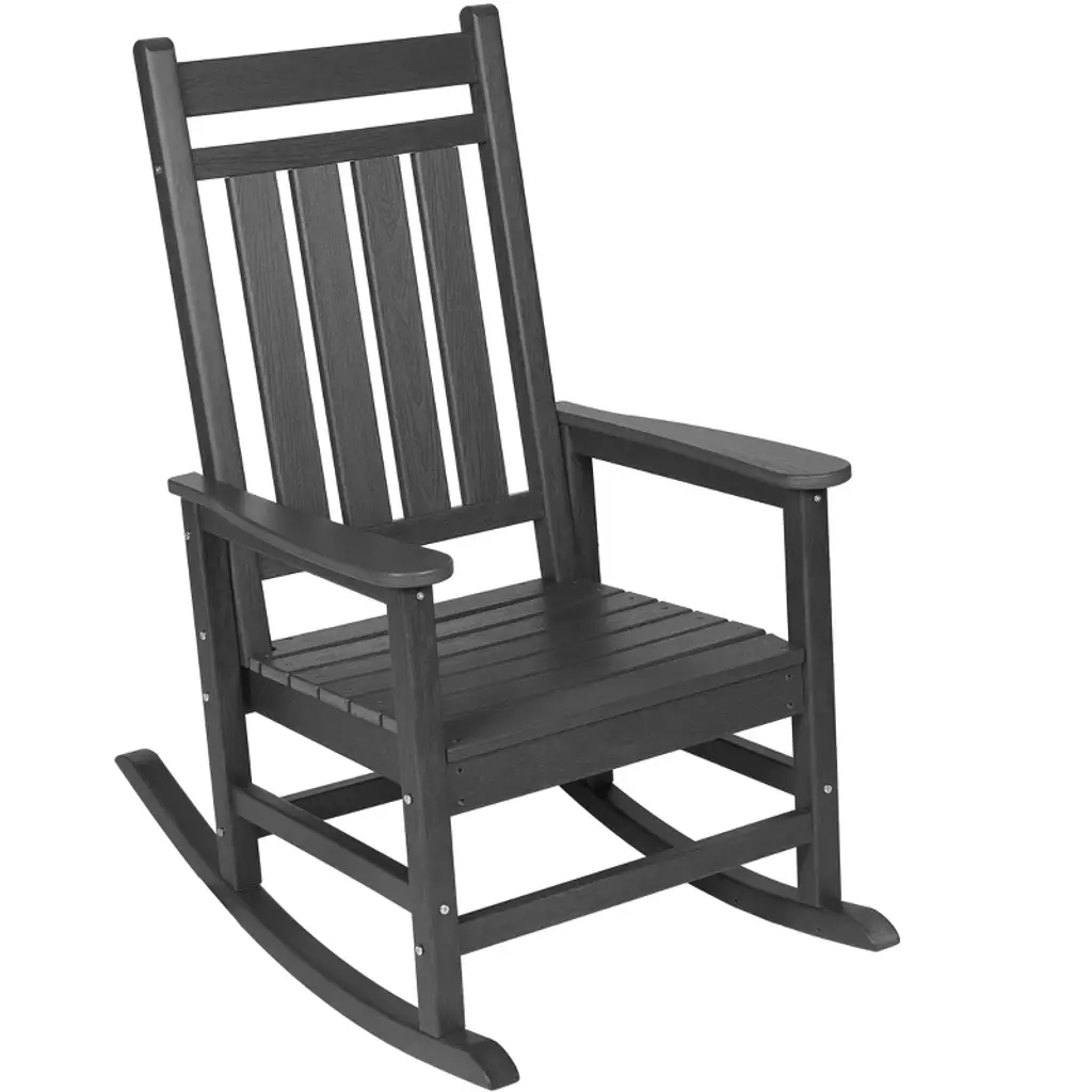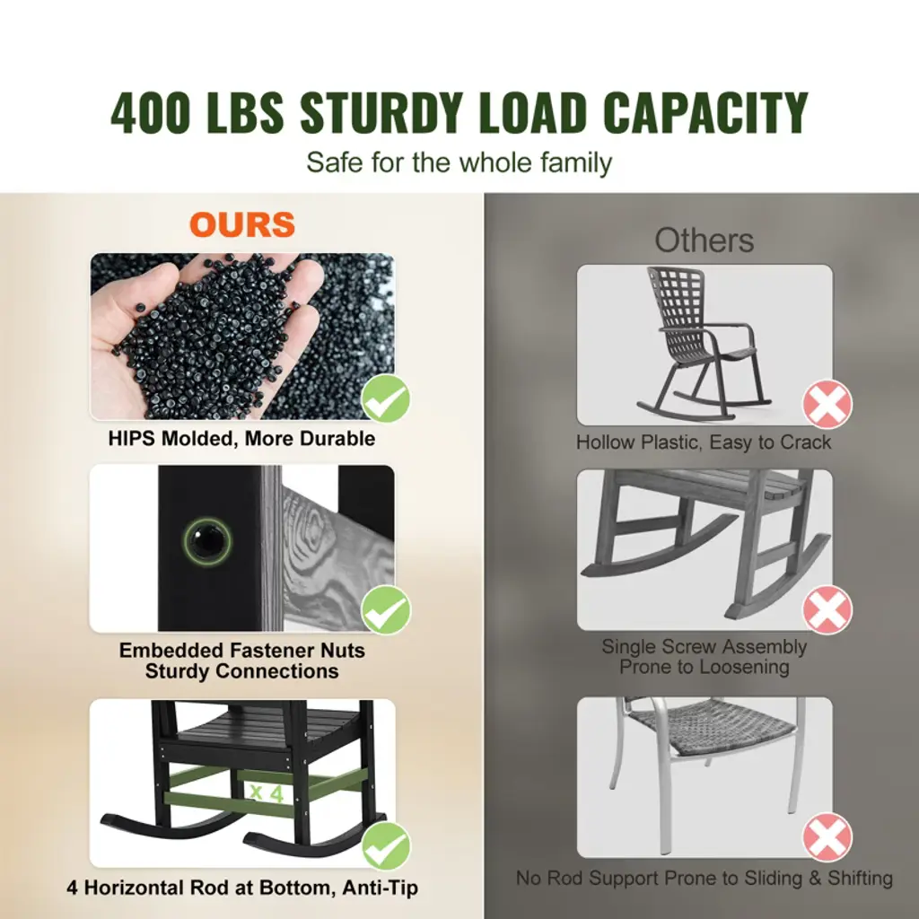 Vevor Porch Rocker, Hips Outdoor Rocking Chair, High Back Patio Rocking Chair With Smooth Armrests, Supports Up To 400 Lbs, For Garden, Black