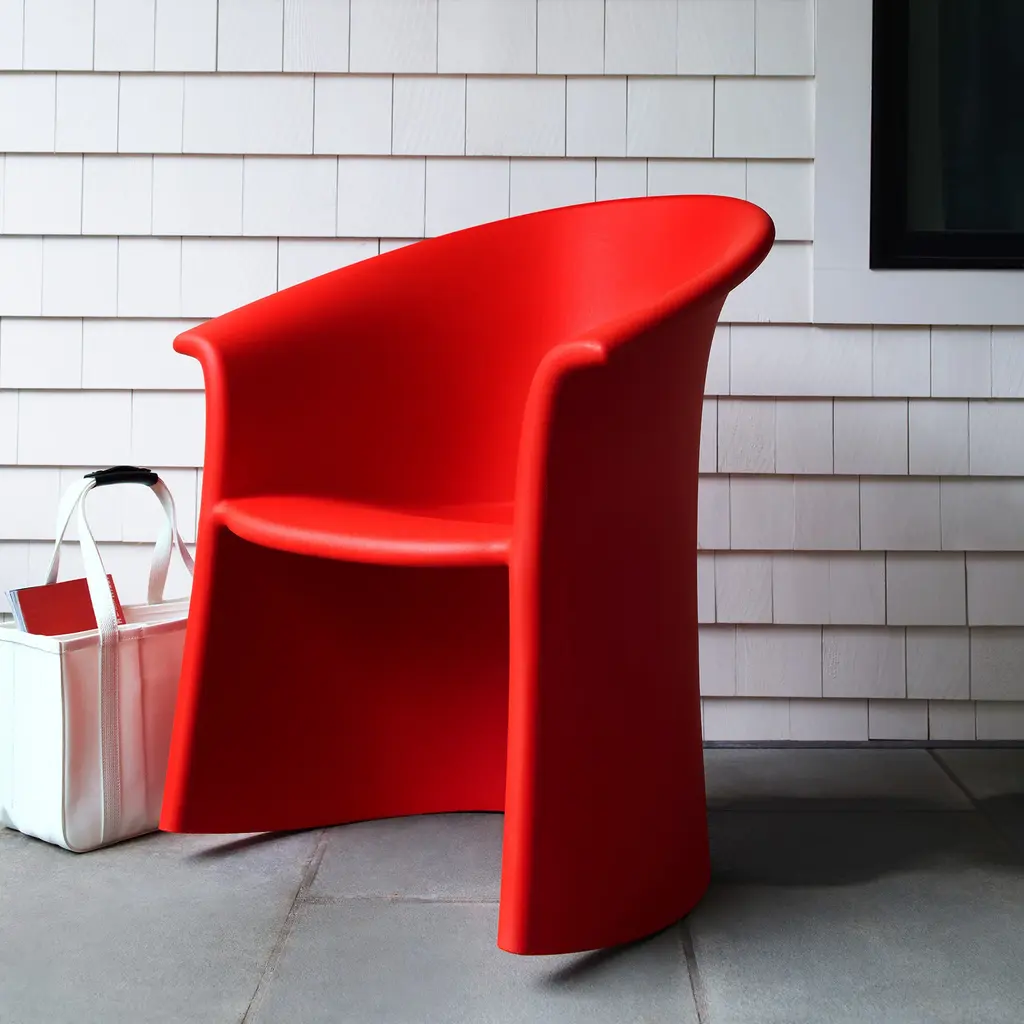 The Vignelli Rocker is a sculptural and iconic masterpiece designed by Italian masters Lella and Massimo Vignelli. Enjoy this modern indoor-outdoor rocker with its smooth curves and subtle base architecture that allows it to oscillate - letting you relax in a gentle, soothing motion. Crafted with a matte finish and made in the USA, this chair is ready for your home, business, or hospitality settings. Highlights
