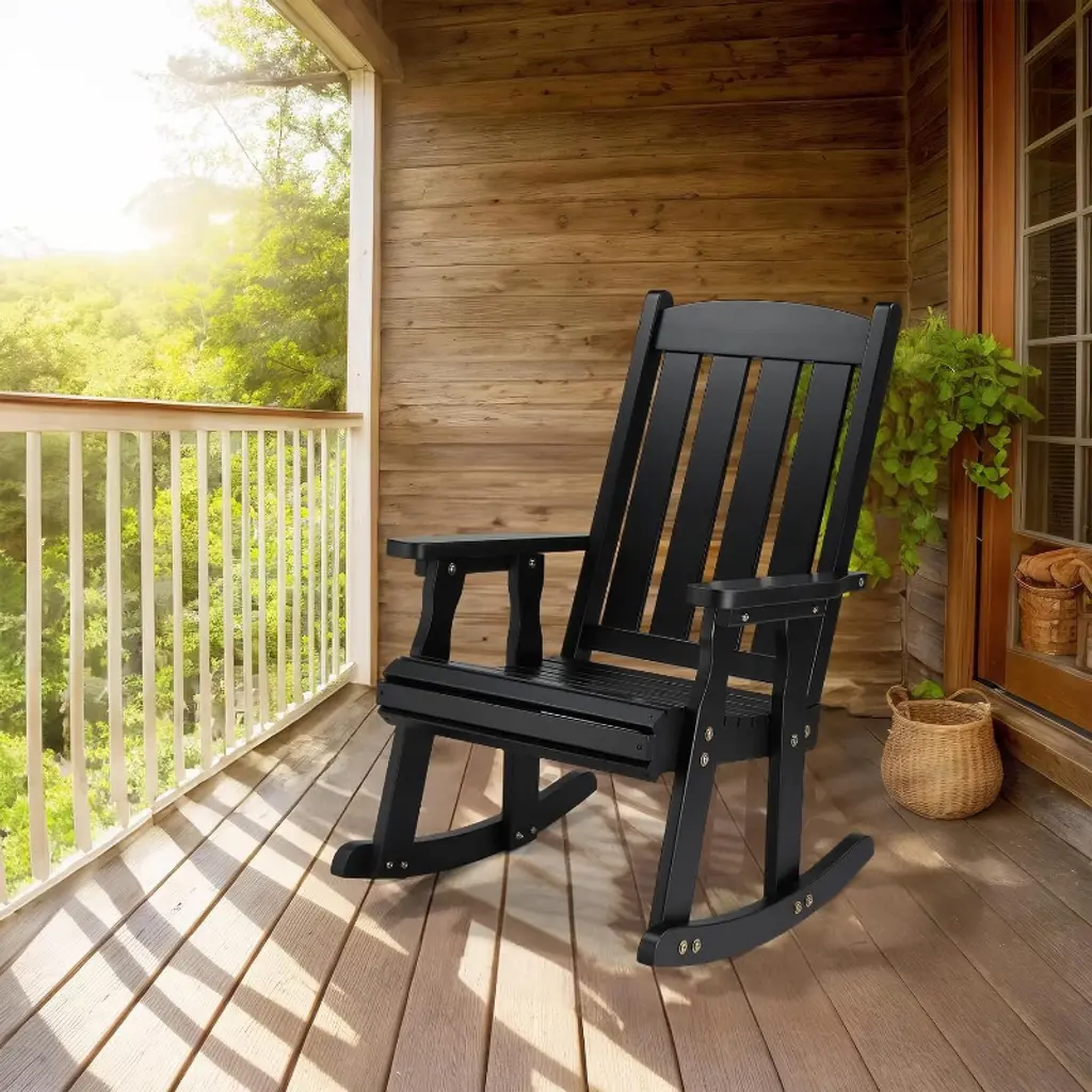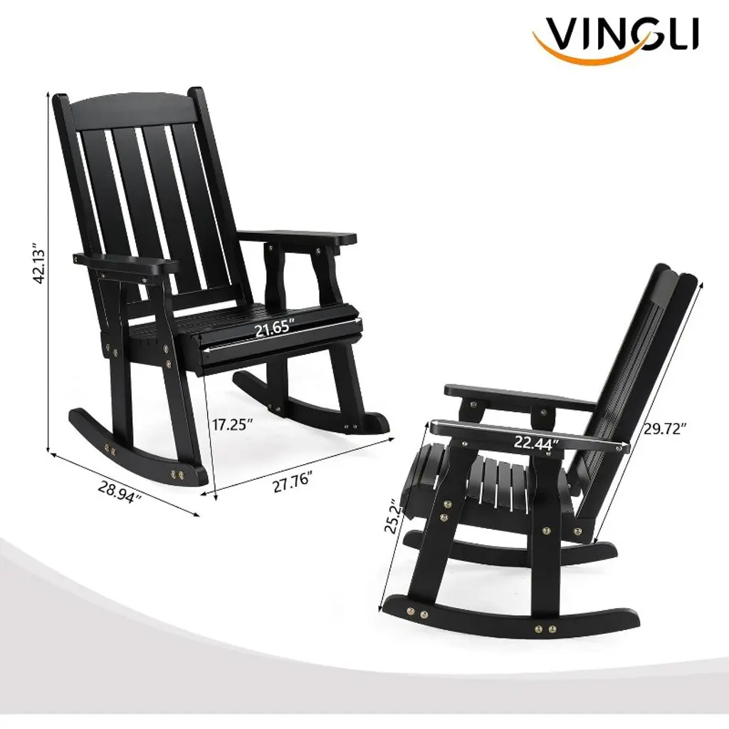 Vingli Outdoor Rocking Chair Set, Heavy Duty 600 Lbs Wooden Rocking Chair With Comfortable Backrest, Weatherproof Rocker With Ergonomic Design
