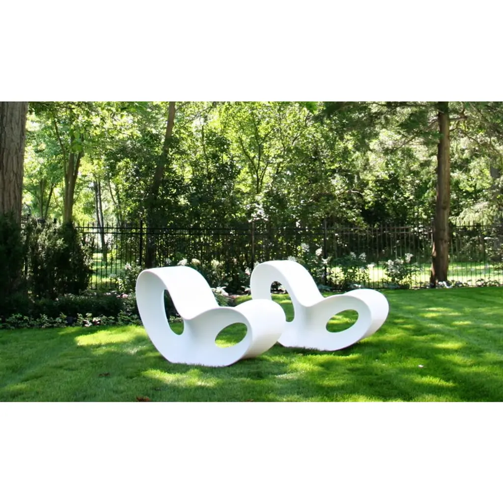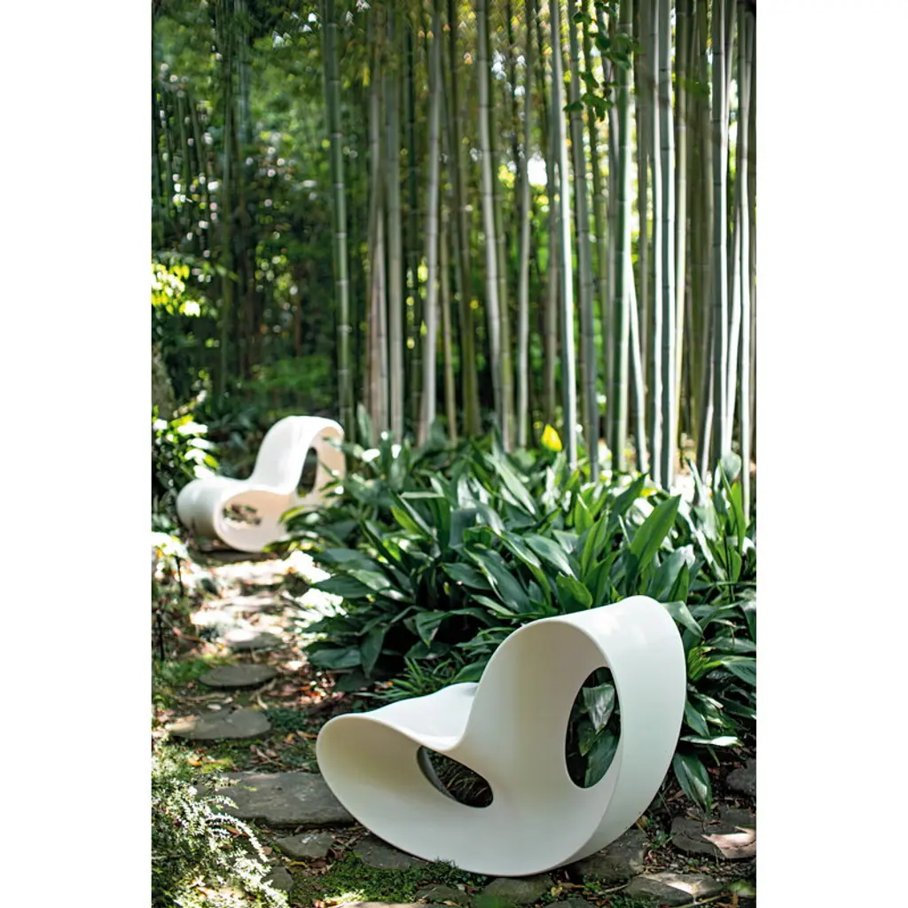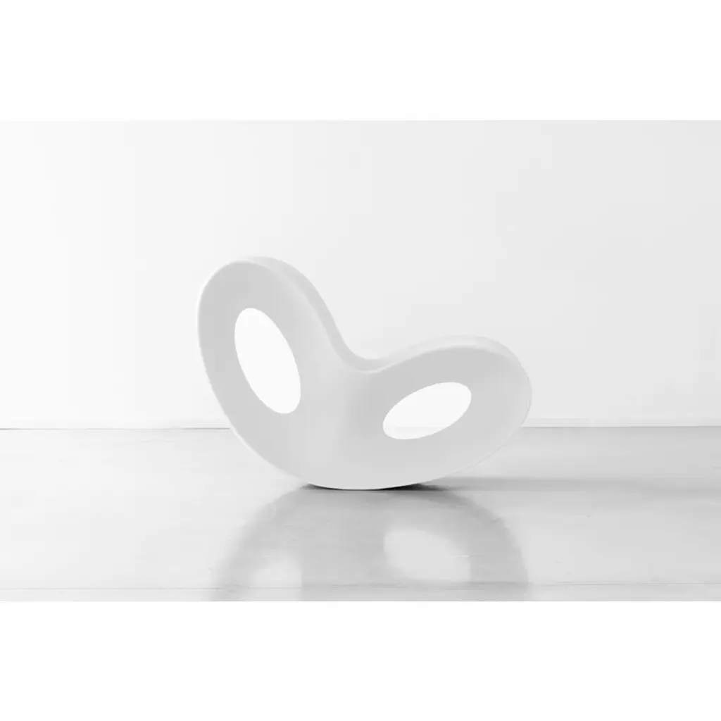 Voido is a modern rocking chair designed for Magis by Ron Arad in 2006. This sculptural and distinctive rocking chair is made of rotational-molded polyethylene. Voido is suitable both for indoor and outdoor use, and it has a timeless, matte white coating.