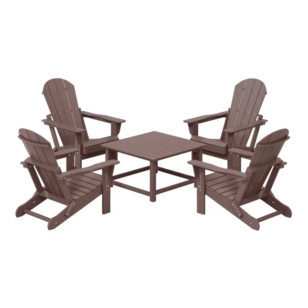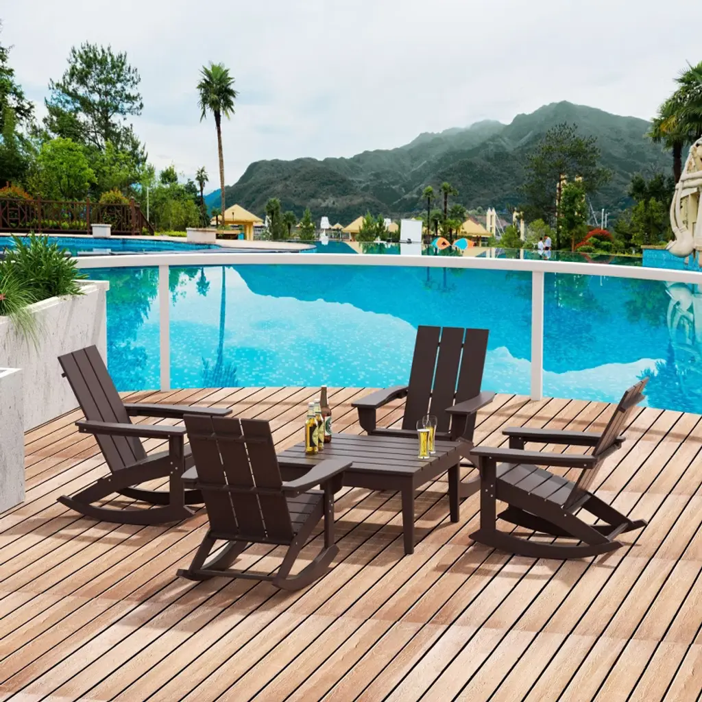 Westintrends 5-piece Modern Adirondack Outdoor Rocking Chair With Side Table Set, Dark Brown