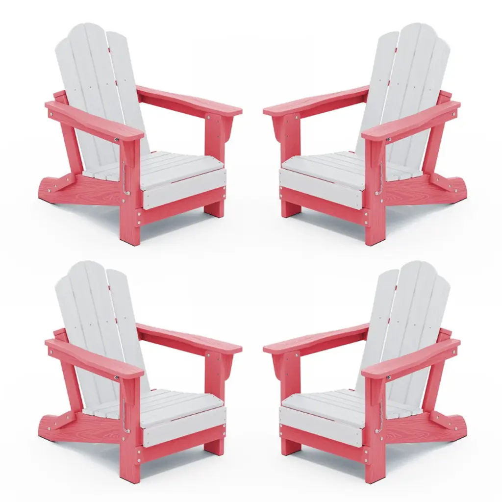 Enjoy company over with this Set of 4 Adirondack contemporary rocking chairs. Modern design that has a contoured seat for ultimate comfort. Built to withstand a range of climates including hot sun, snowy winters, and strong coastal winds. UV protectant color to keep its rich vibrant colors for many years of use. The rocking chair is the perfect addition to any porch, patio, or veranda. Cleans easily with soap, water, and a soft-bristle brush. These well-constructed patio rocker chairs have marine-grade quality hardware. A traditional Adirondack set evokes quiet front porch charm. Ideal for lounging outdoors or in your favorite indoor spot. Multi-functional because it can also be used indoors. Let your outdoor living experience flourish when you invest in this solid plastic rocking chair. Available in easy to match color options.While we strive to accurately represent product colors, please be aware that actual colors may vary slightly due to individual screen settings and lighting conditions. FeaturesSet includes four (4) adirondack rocking chairsUV and weather resistant protects from outdoor elementsSmooth rocker rails provide a more comfortable rocking experienceWide armrest for extra comfortEasy and simple to assembleSolid construction holds up to 330 lbsEasy to clean with soap, water, and a soft brushDetails:Product Type: Patio Rocking ChairsWhat's Included: (4) Rocking ChairRocking ChairDimensions: 18.5" W x 34.25" D x 37.75" HWeight: 43 lbs.Seat Width: 20.5"Seat Depth: 20.5"Seat Height: 17.25"Weight Capacity: 450 lbs.