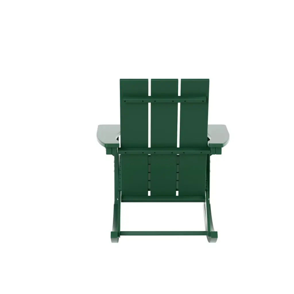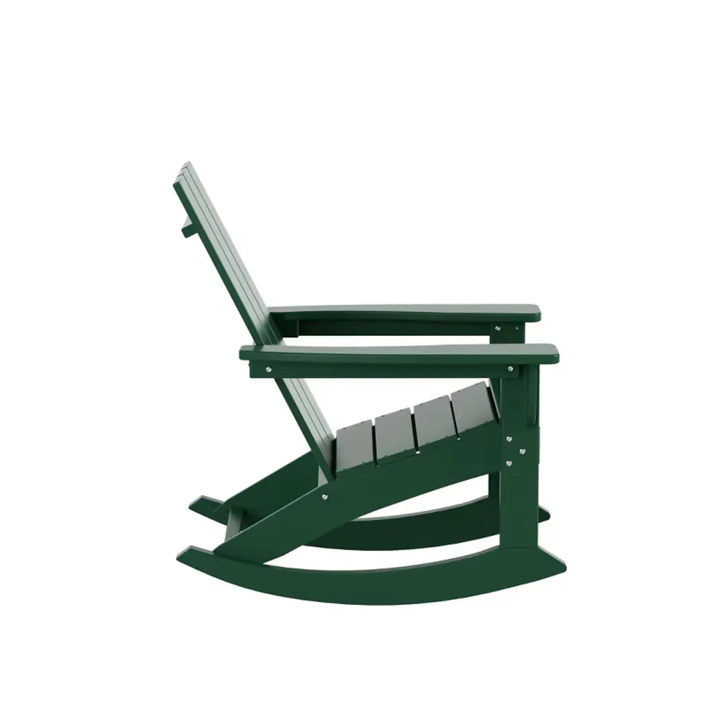 Westintrends Modern Adirondack Outdoor Rocking Chair With Side Table Set, Dark Green
