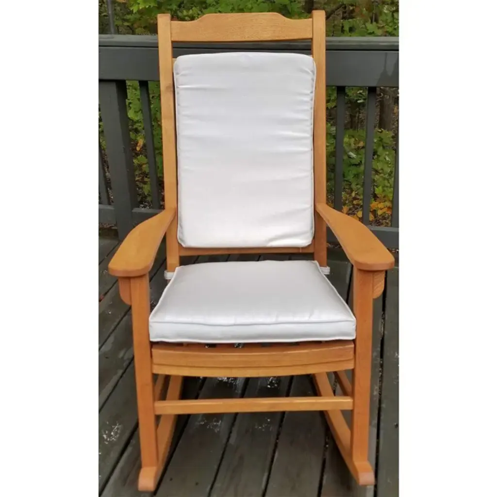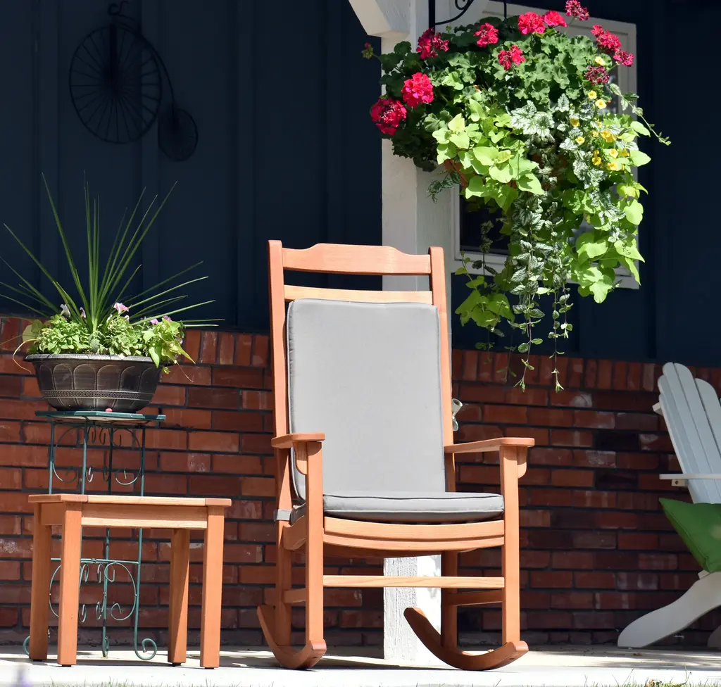 Our World's Finest Rocking Chairs just got even better! Cushions made to fit our chair in several beautiful color choices. Hidden Velcro straps to hold the cushion in place. Made with water and fade resistant fabric, will be great for an indoor or outdoor placement.Easy to clean, and maintain.