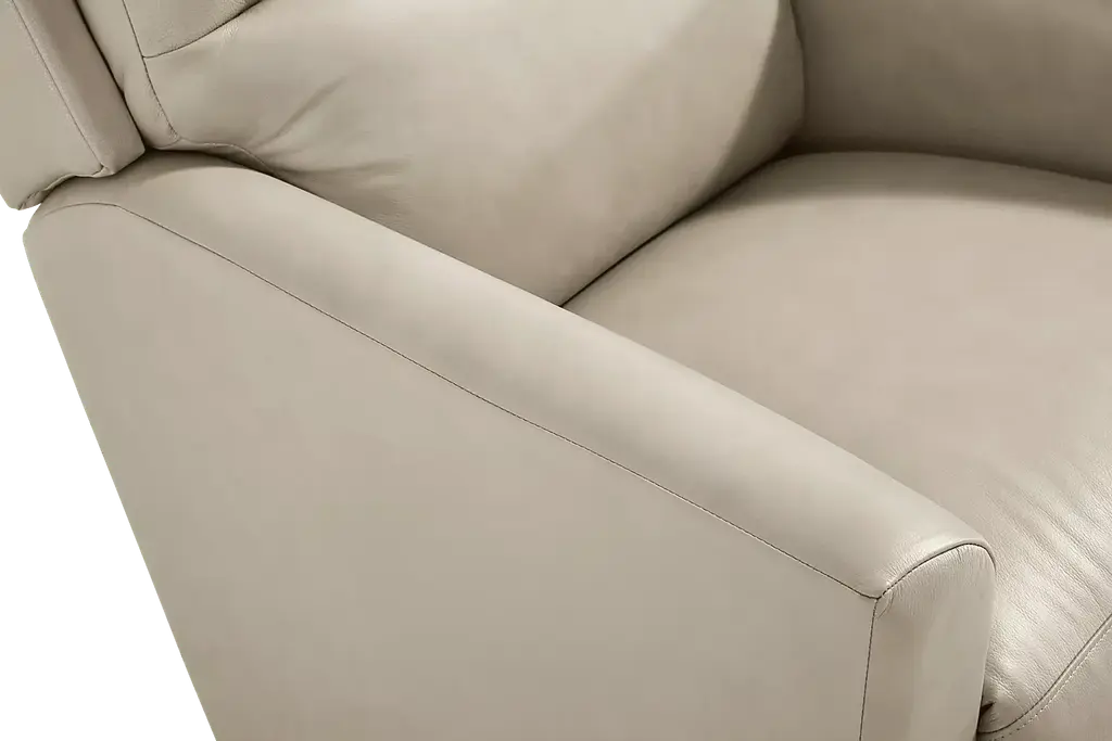 The comfort of stillness gets a serene reclining upgrade with the Wynne I recliner as it moves smoothly and supports luxuriously, accentuating its gracious curves and soft, sumptuous textures. With supple top grain leather where the body touches, this transitional recliner comes in a breath-taking gray hue. Subtle wedge arms and pillowy cushions invite sinkable relaxation, while deep tufting and top-stitched seams add tailored refinement. Enjoy the gentle rocking motion or find your perfect reclining combination with the 3-position footrest and 16-position ratcheting recline mechanism. Upholstery: Top grain leather where the body touches with polyurethane sides and back.